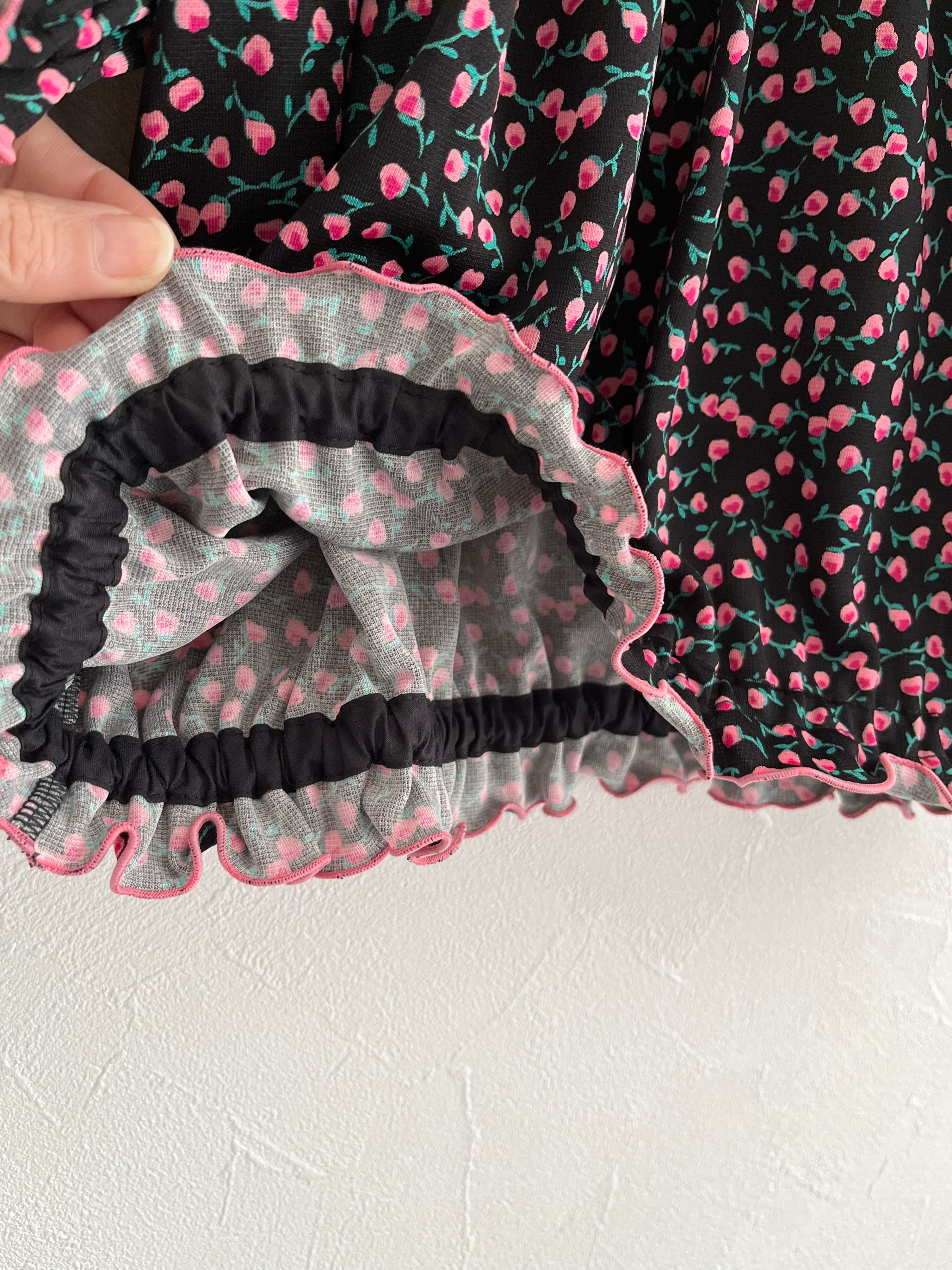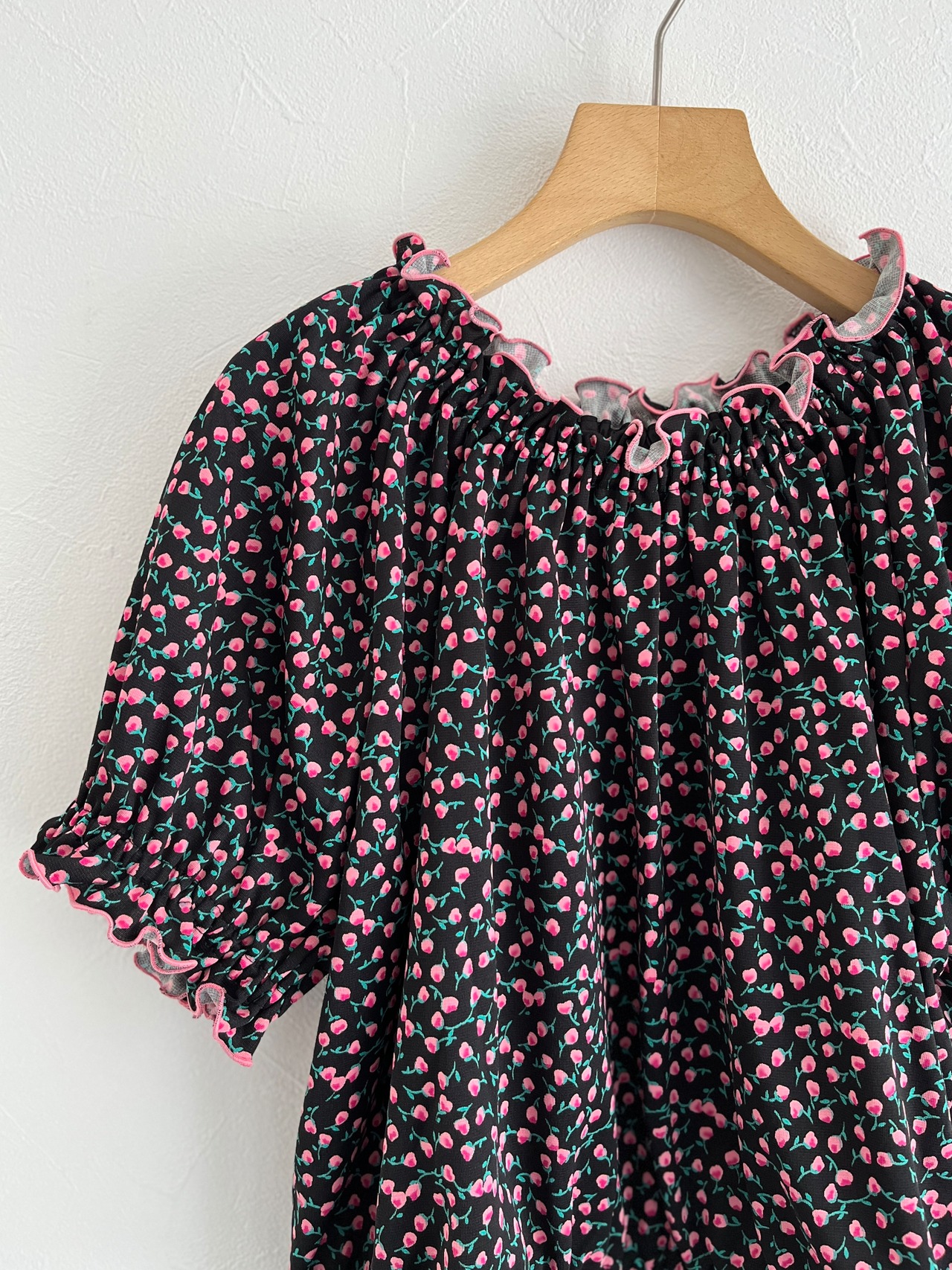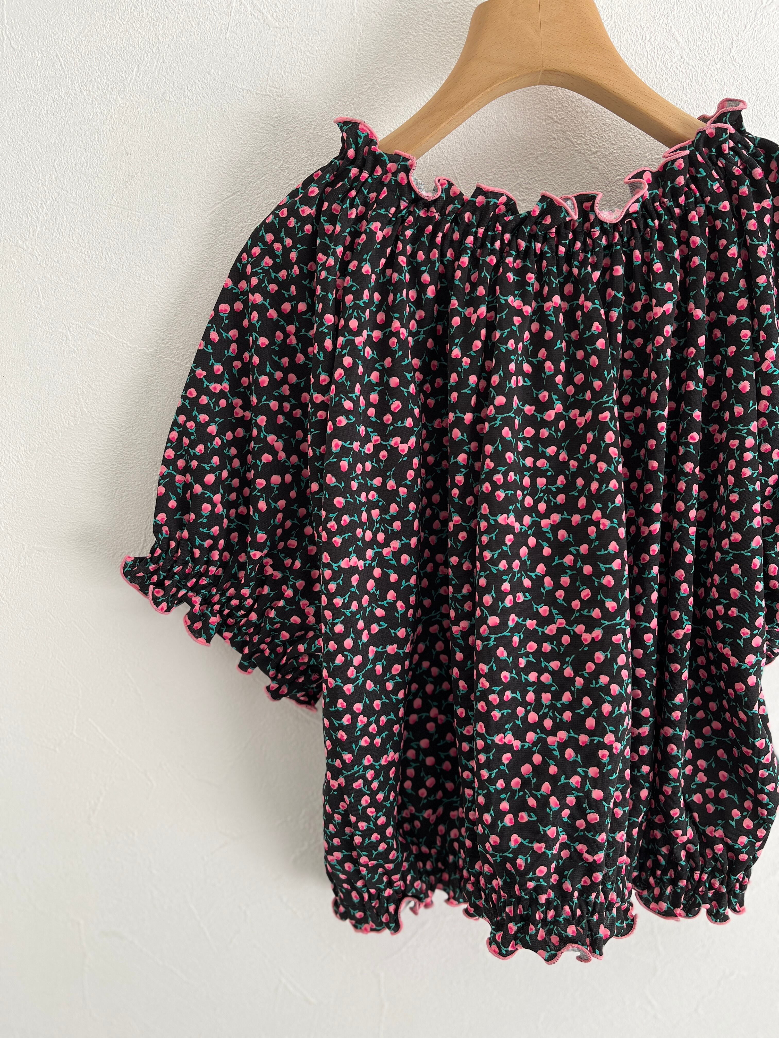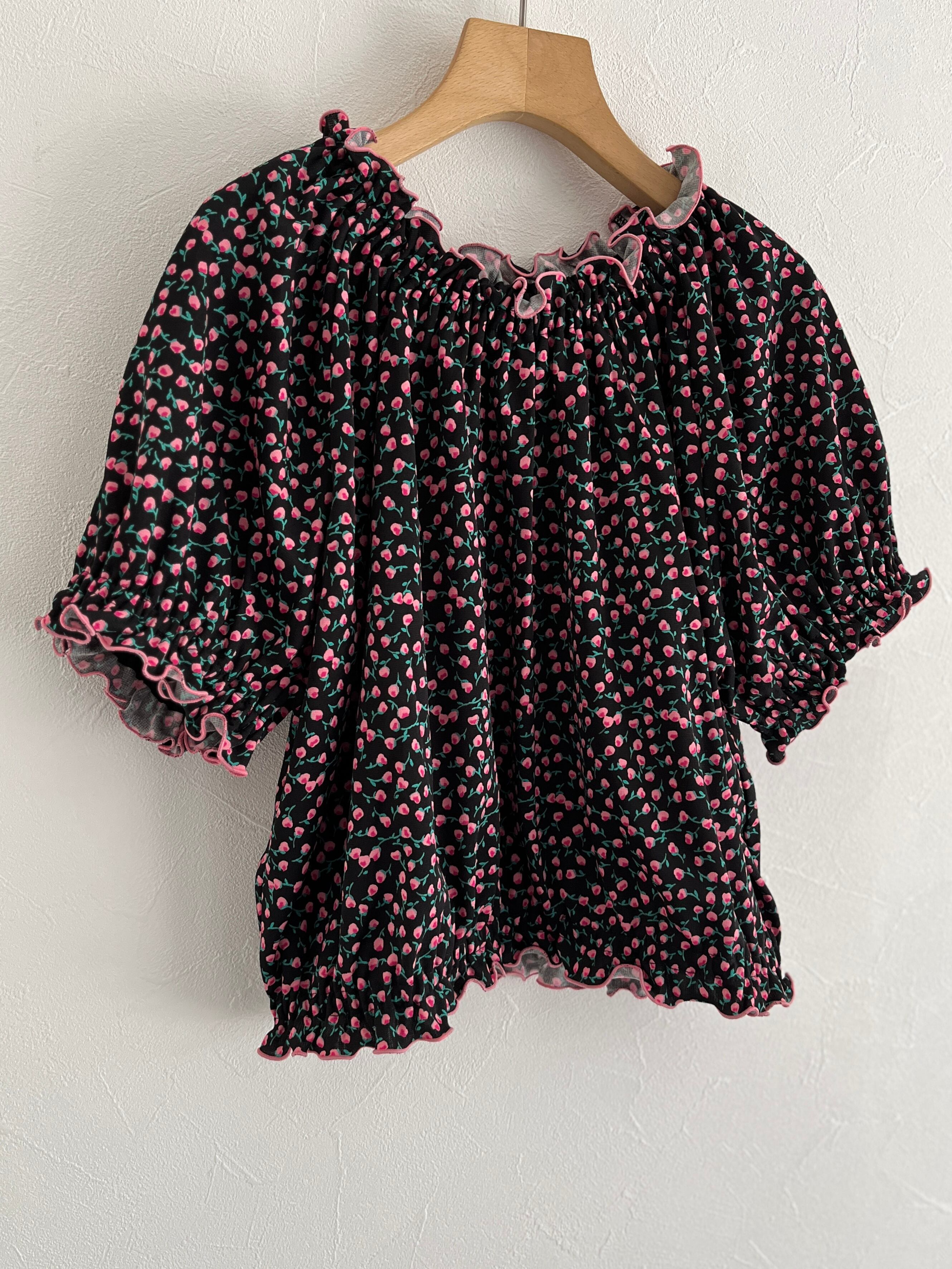 Dot and Stripes CHILD WOMAN/ポンチ small roseプリント パフスリーブブラウス (クロ) :1101BL012261