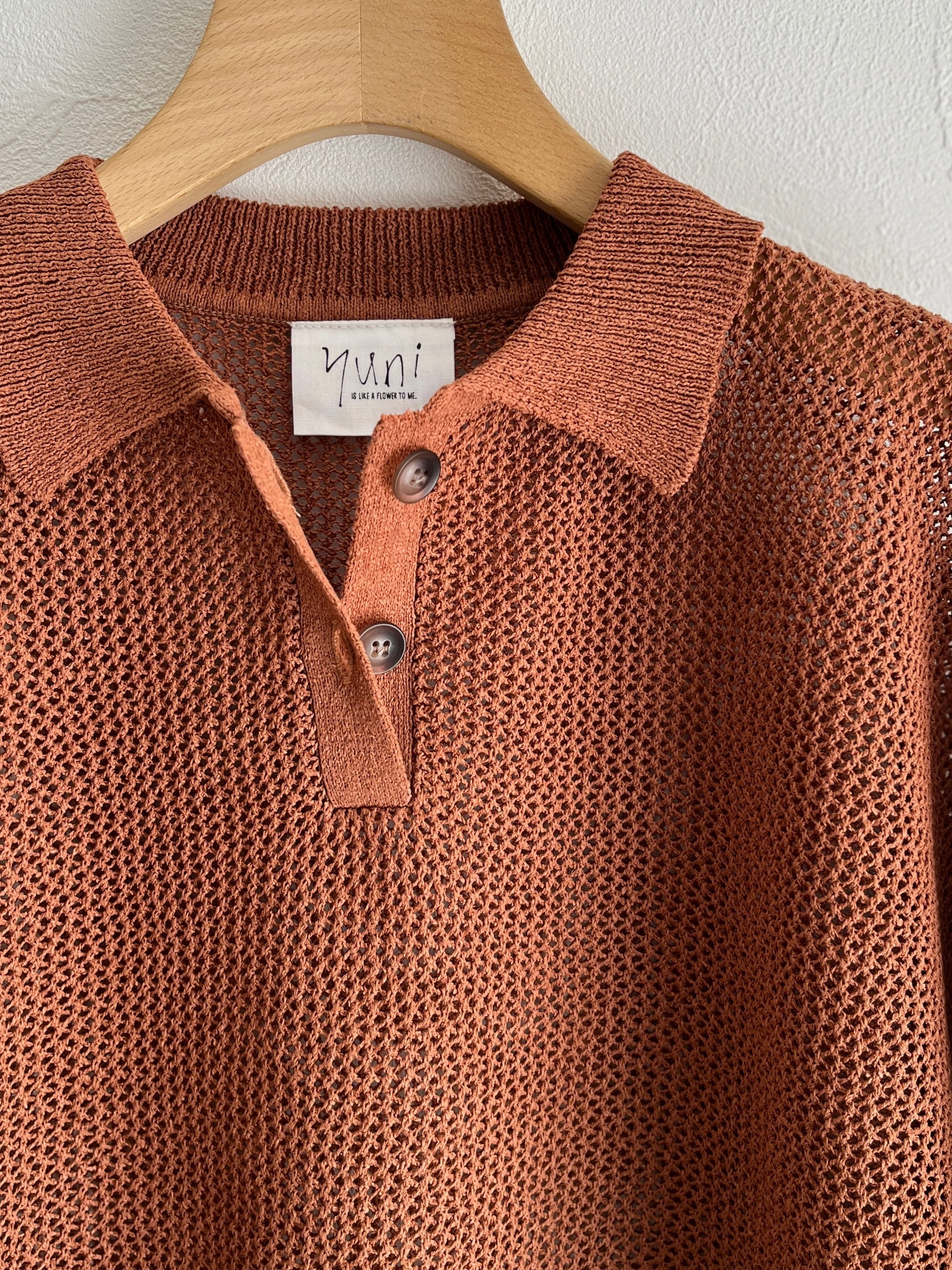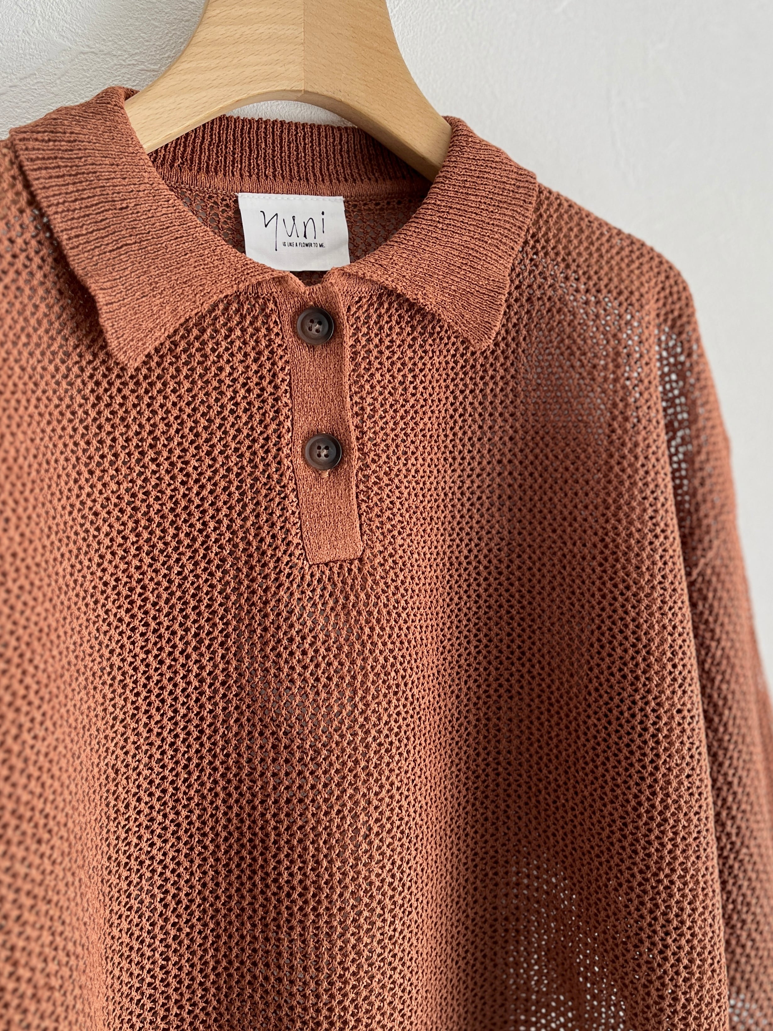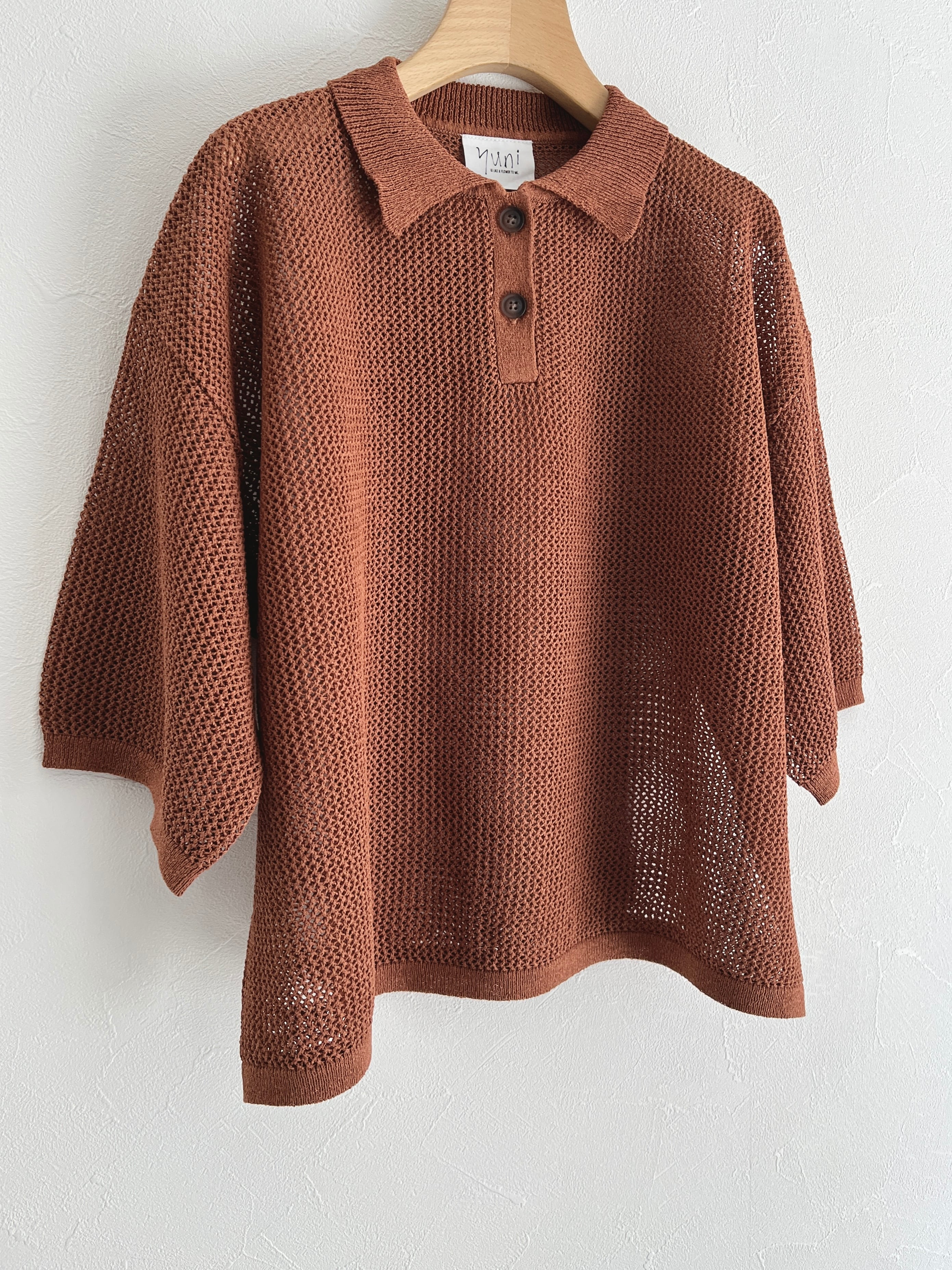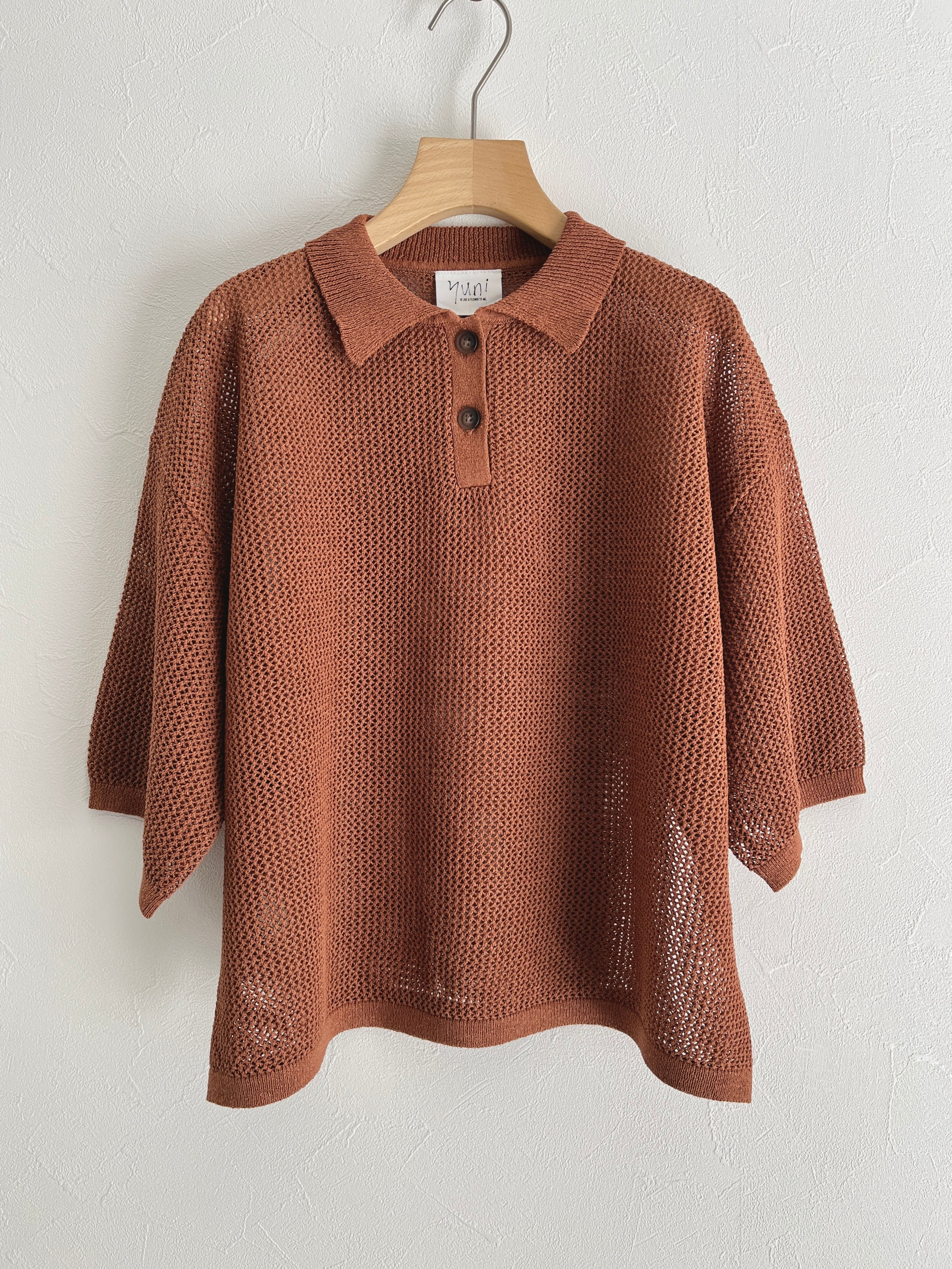 yuni Lonsing18 和紙/Polyester knit ポロシャツ (チャ) :1701KN010261