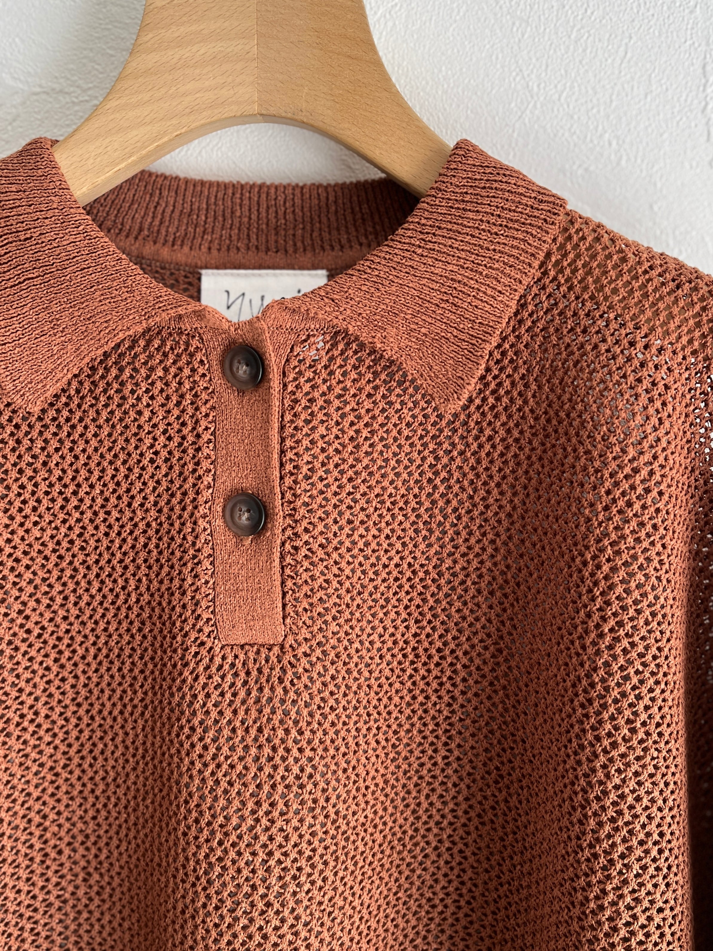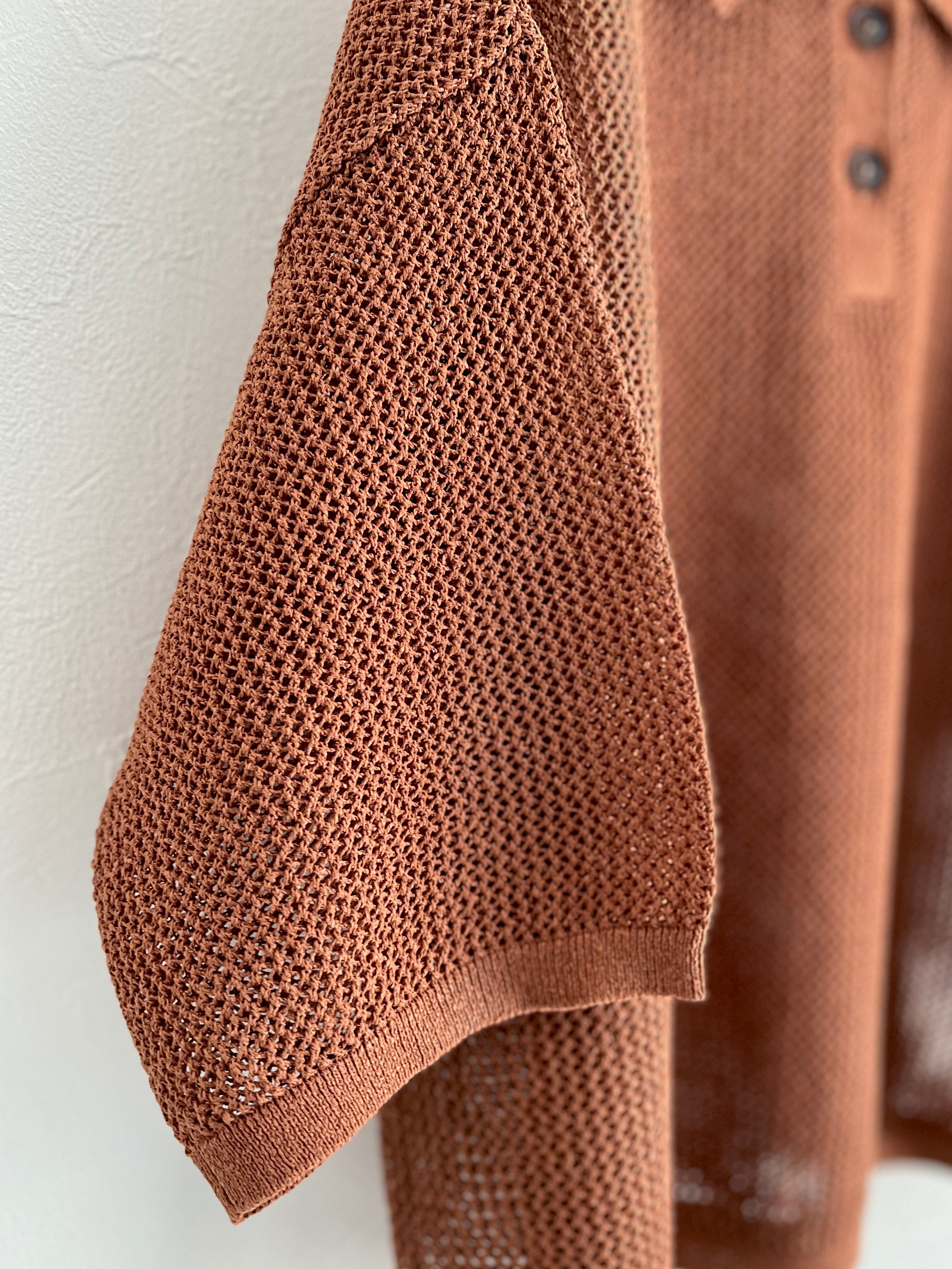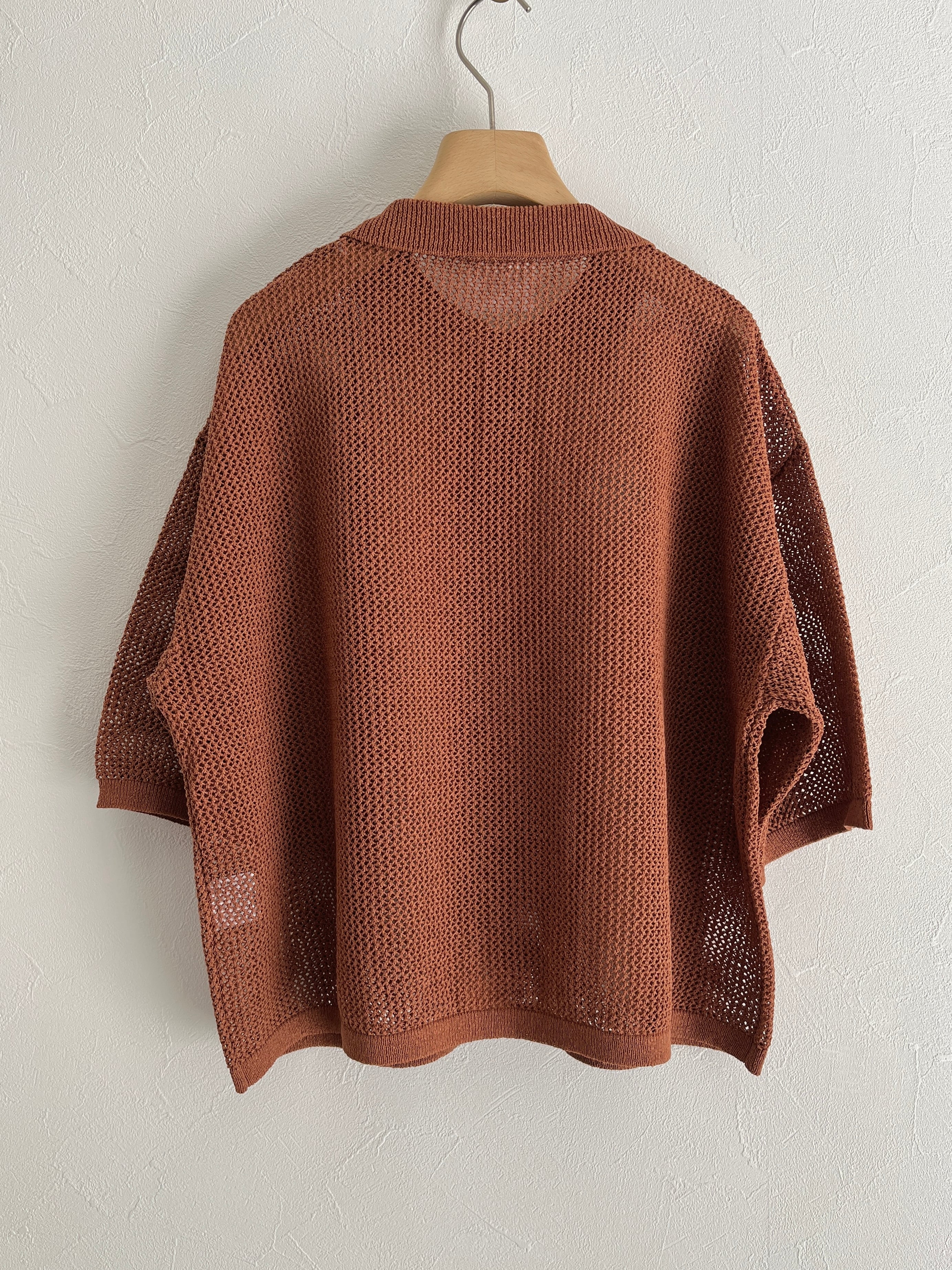 yuni Lonsing18 和紙/Polyester knit ポロシャツ (チャ) :1701KN010261