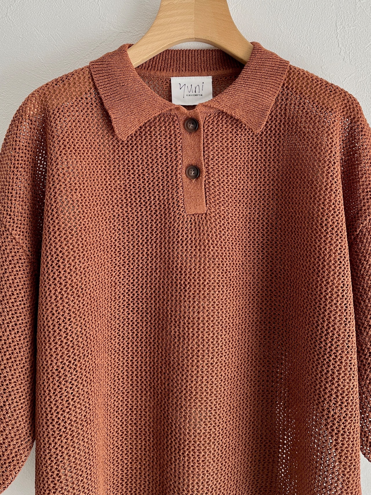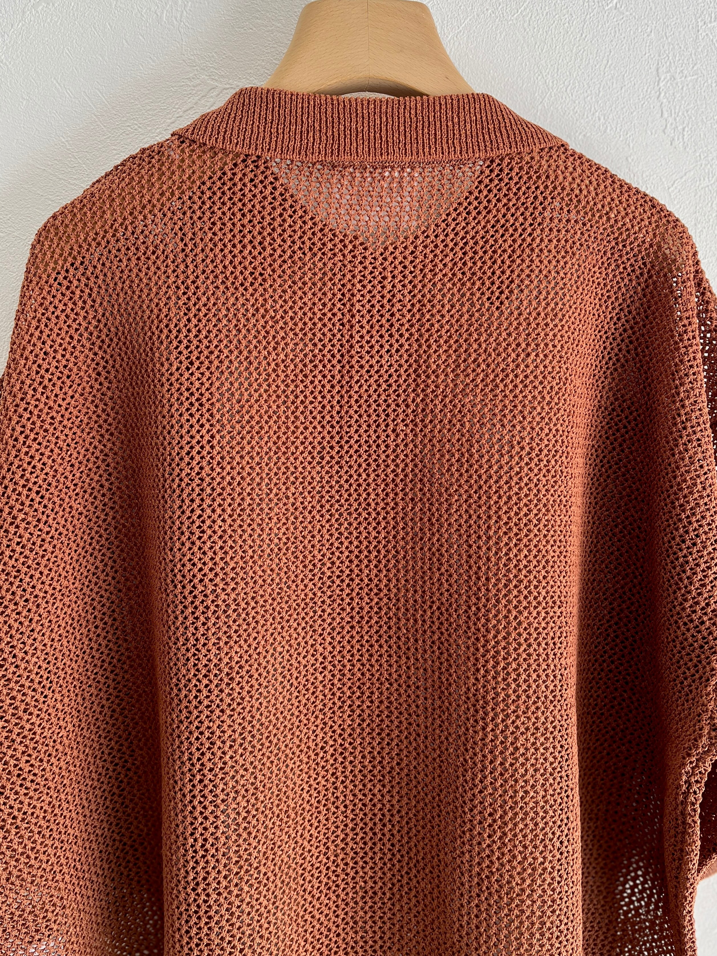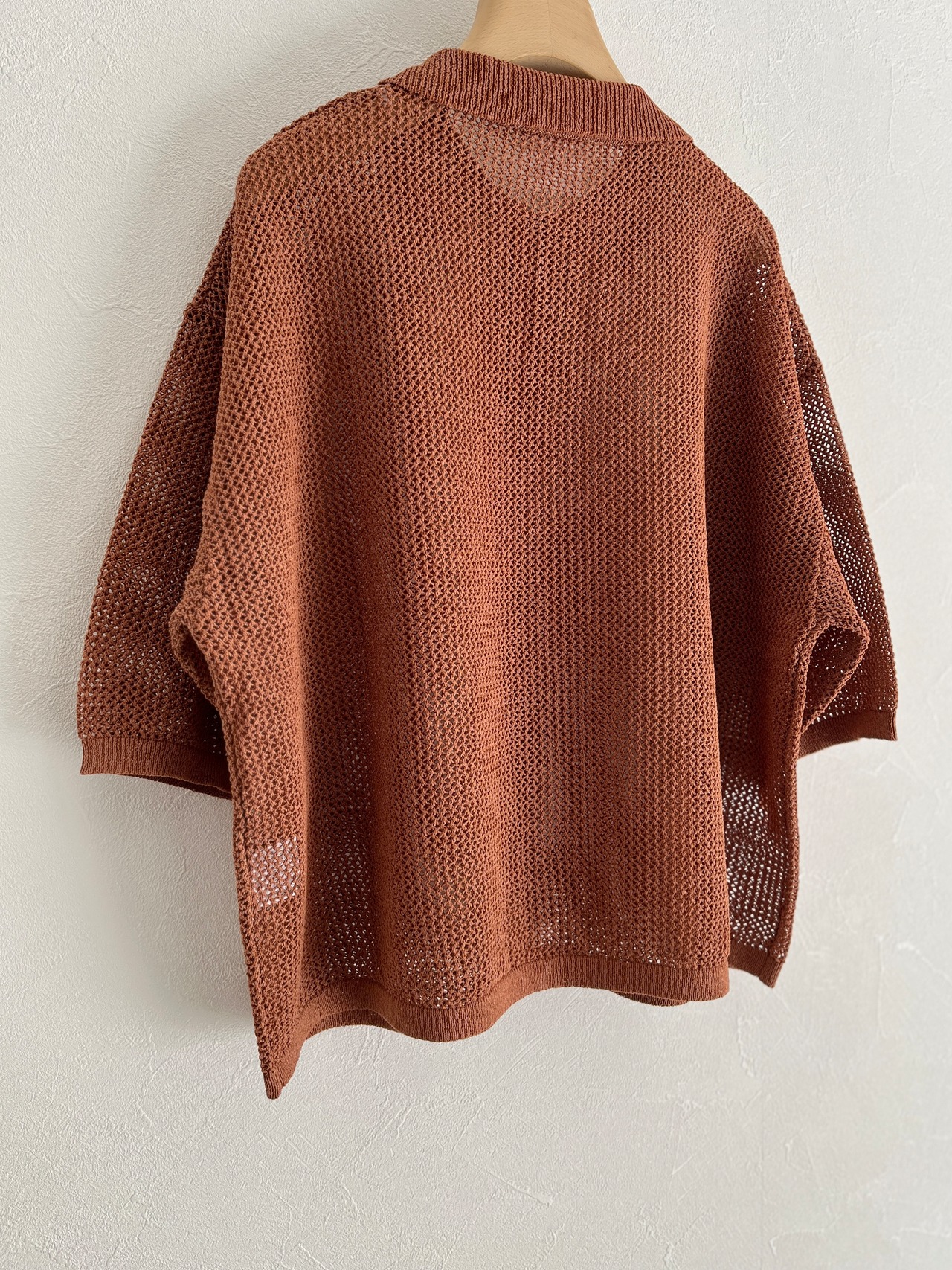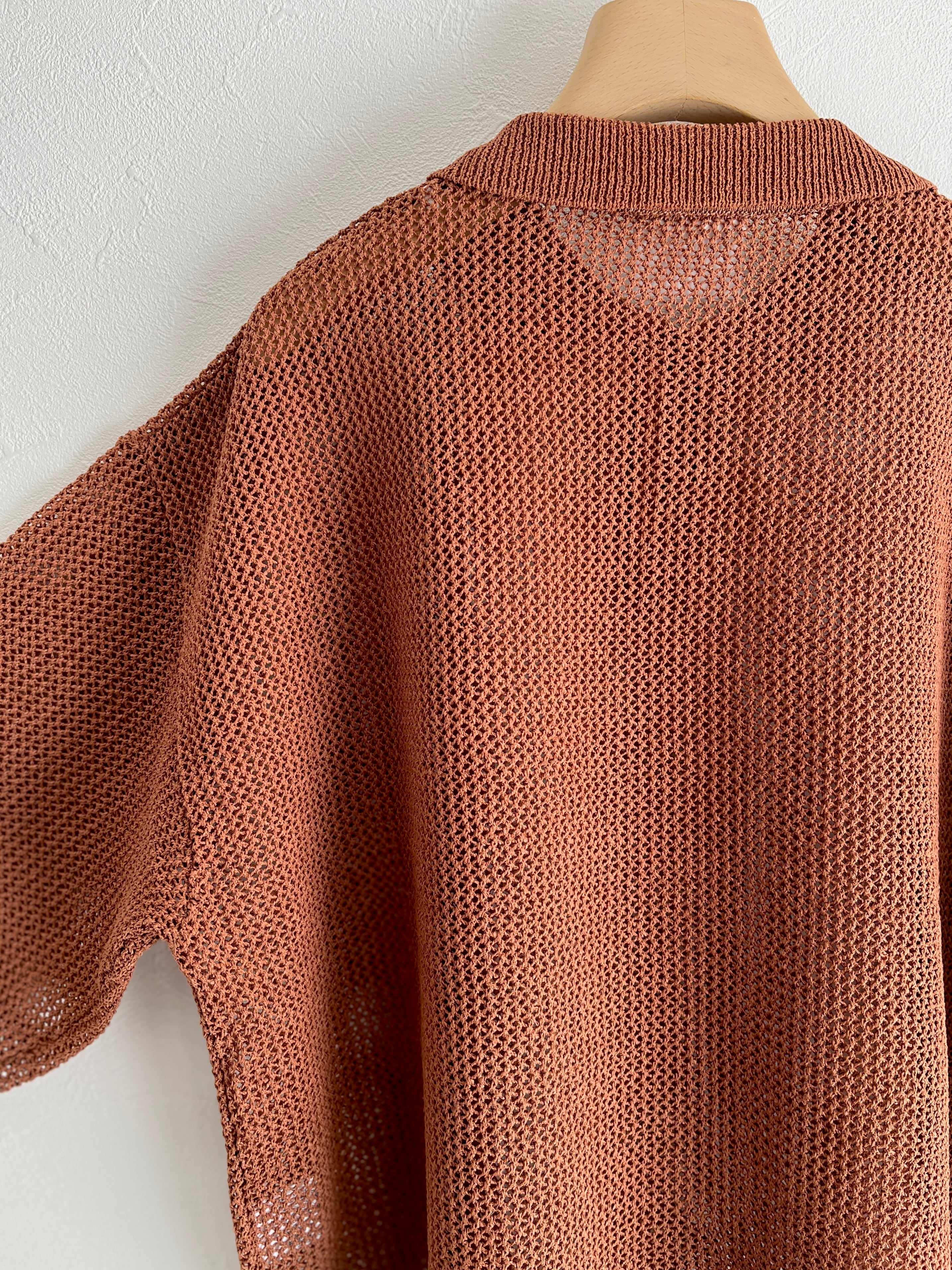 yuni Lonsing18 和紙/Polyester knit ポロシャツ (チャ) :1701KN010261