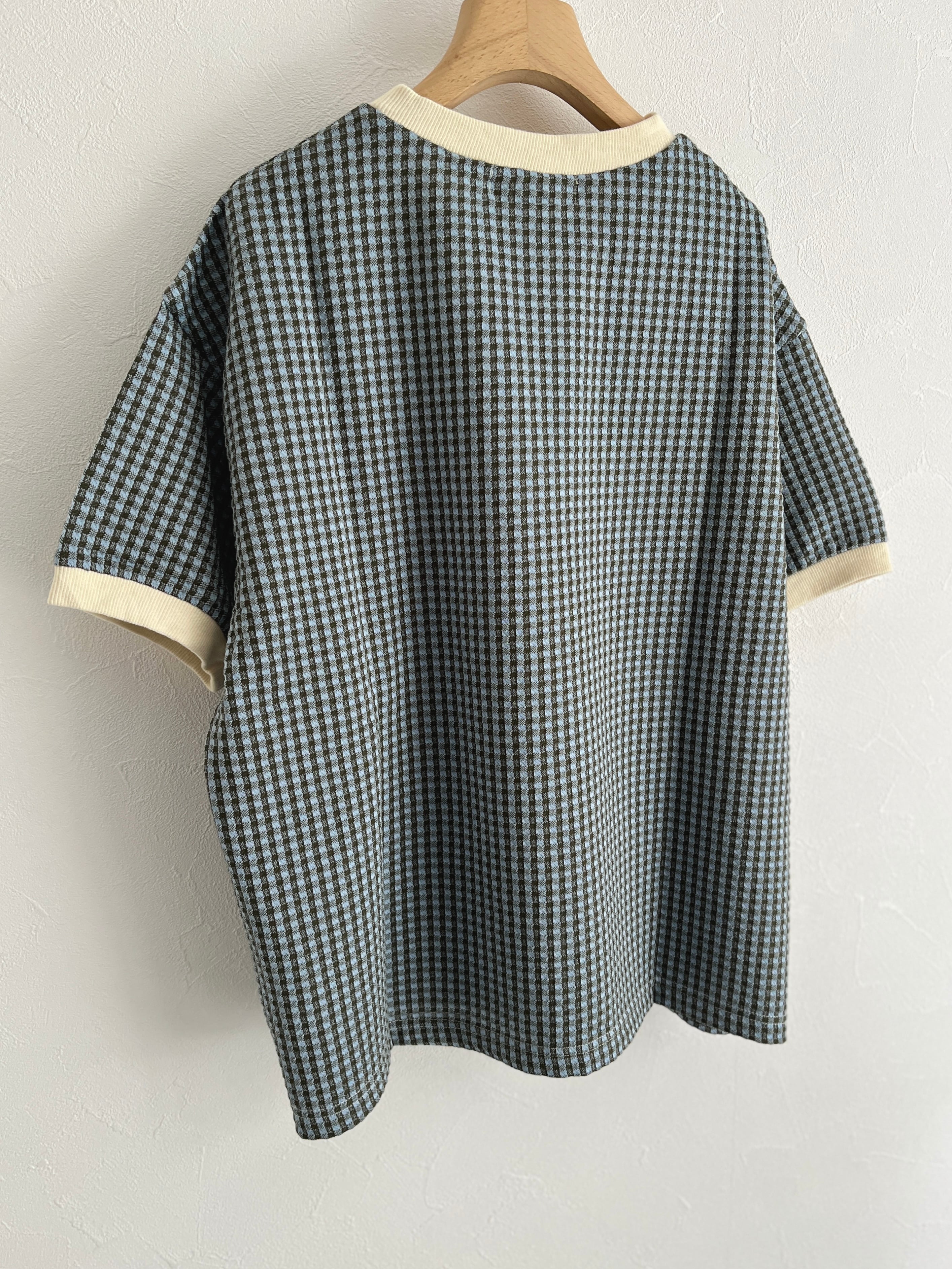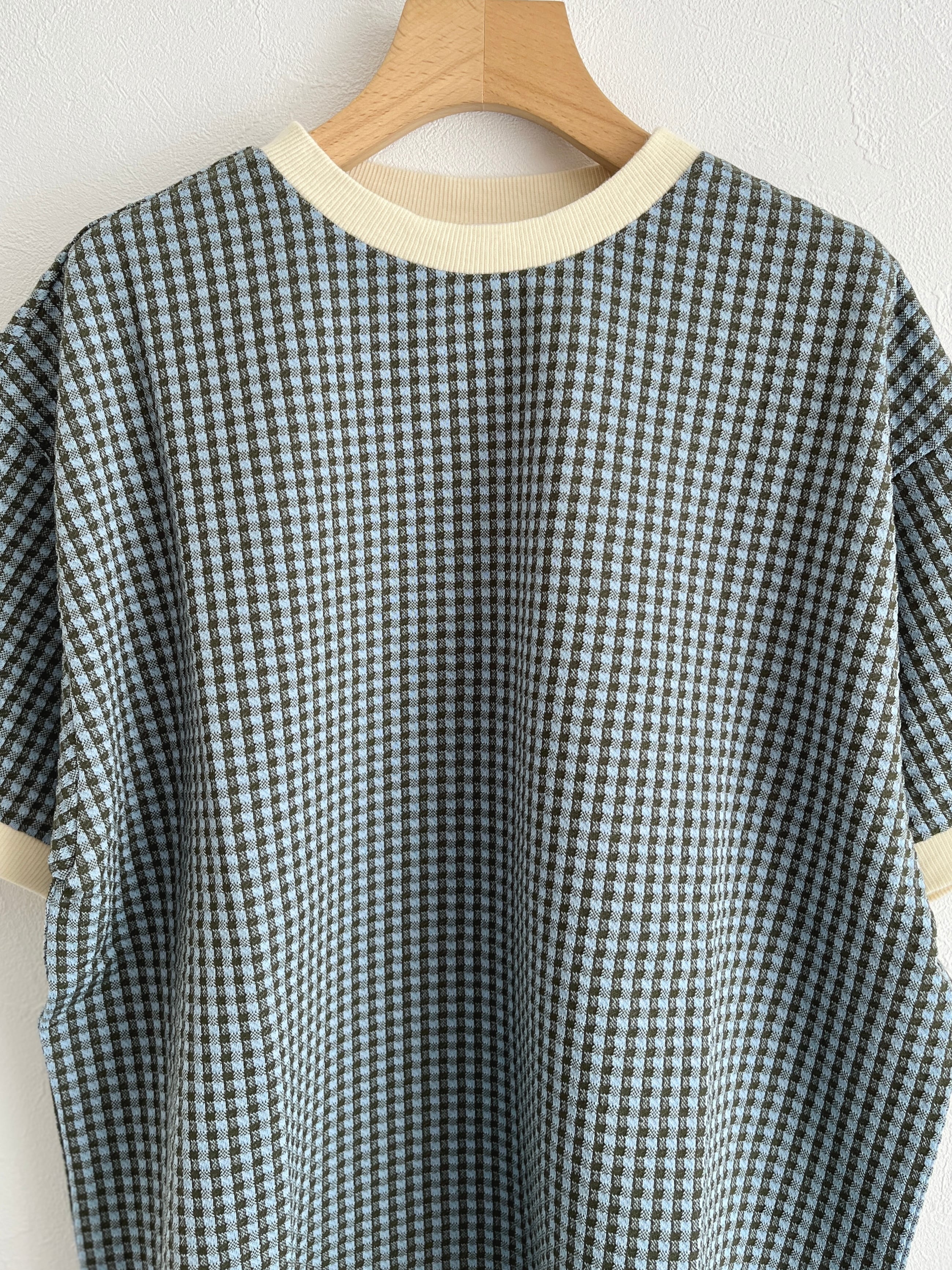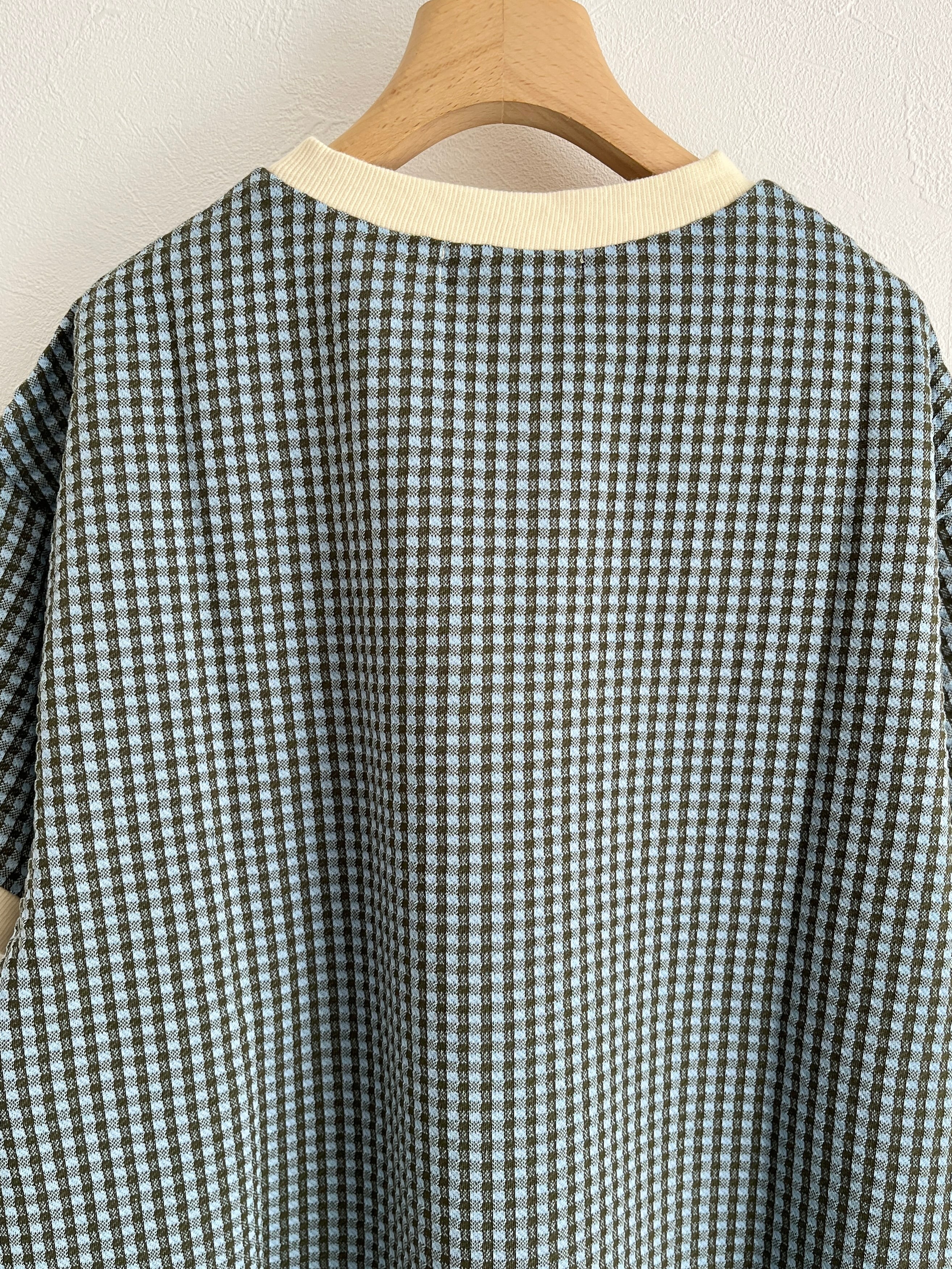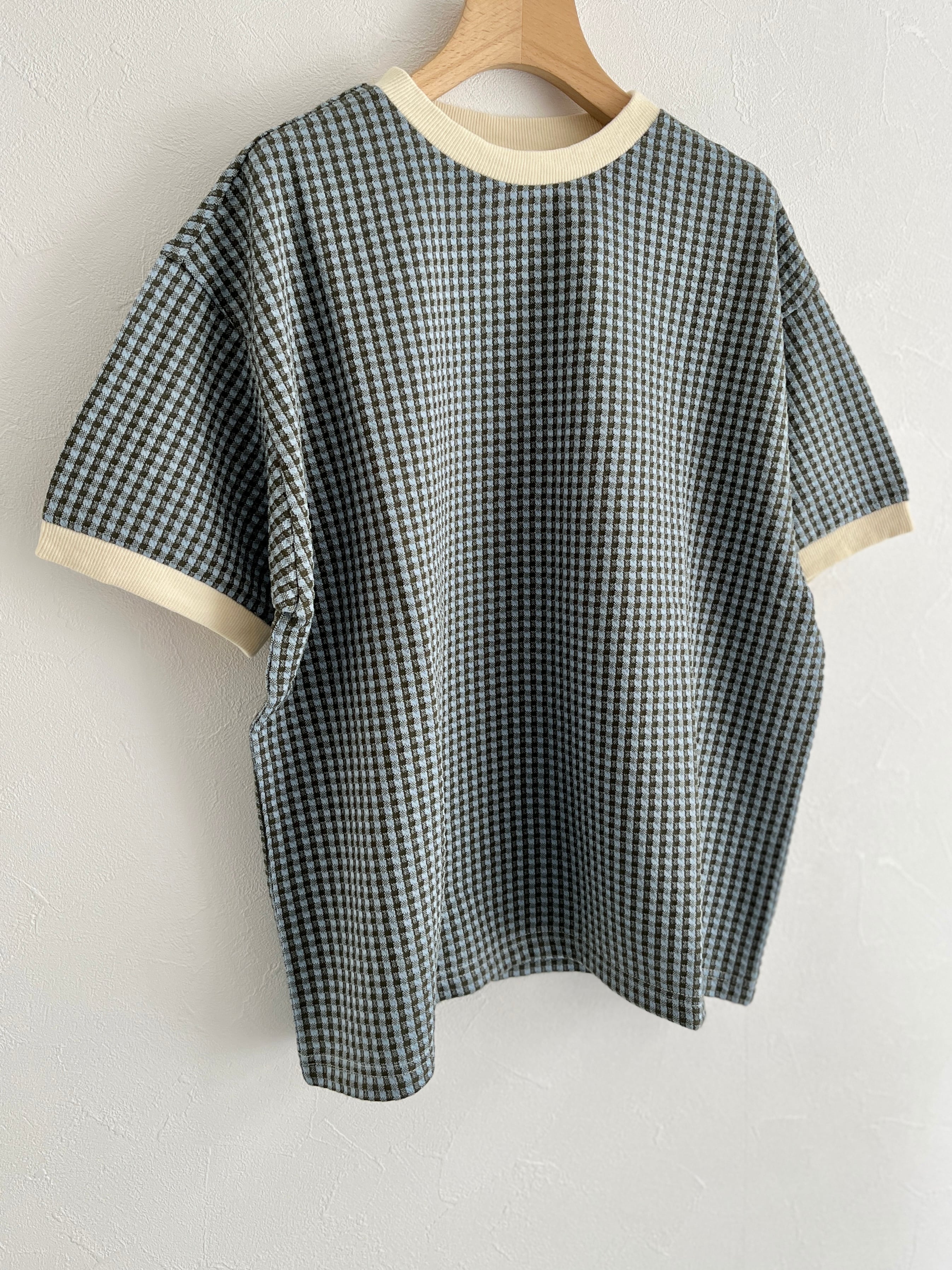 PAR ICI/ギンガムジャガード 半袖BIG Tシャツ(カーキ):5001CT029241