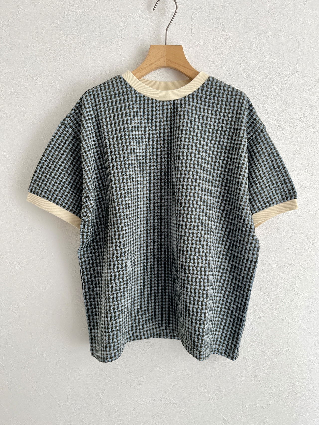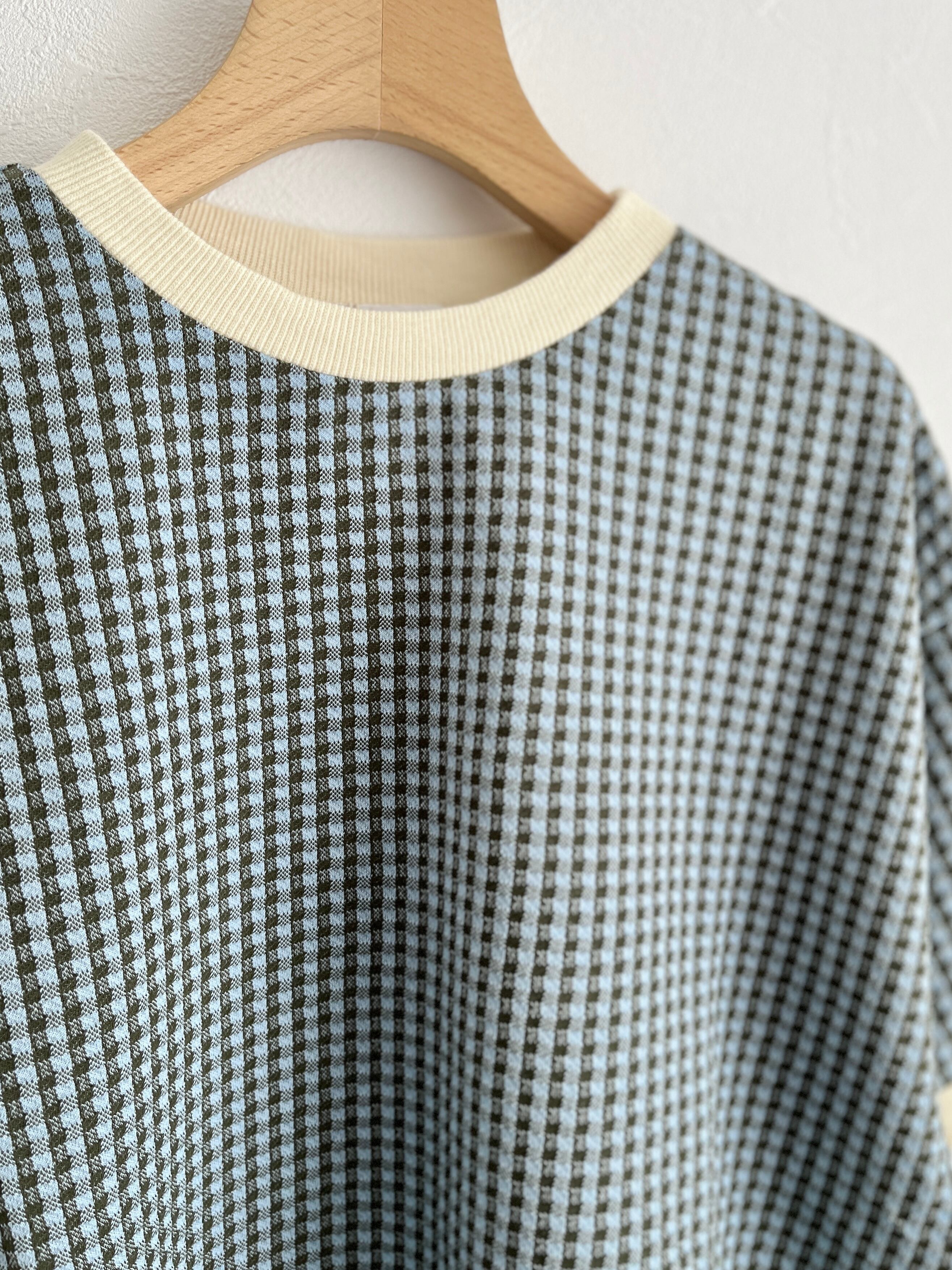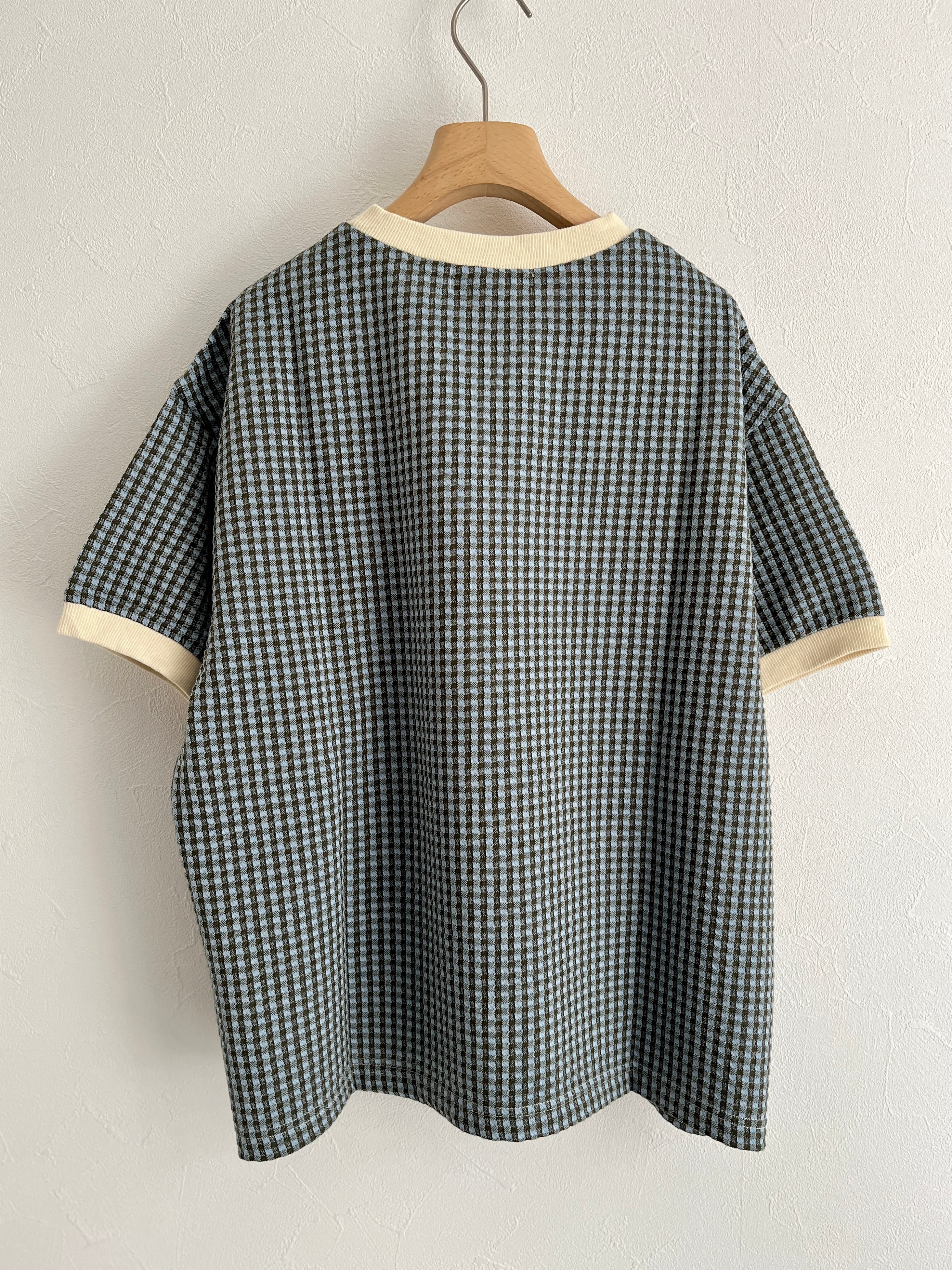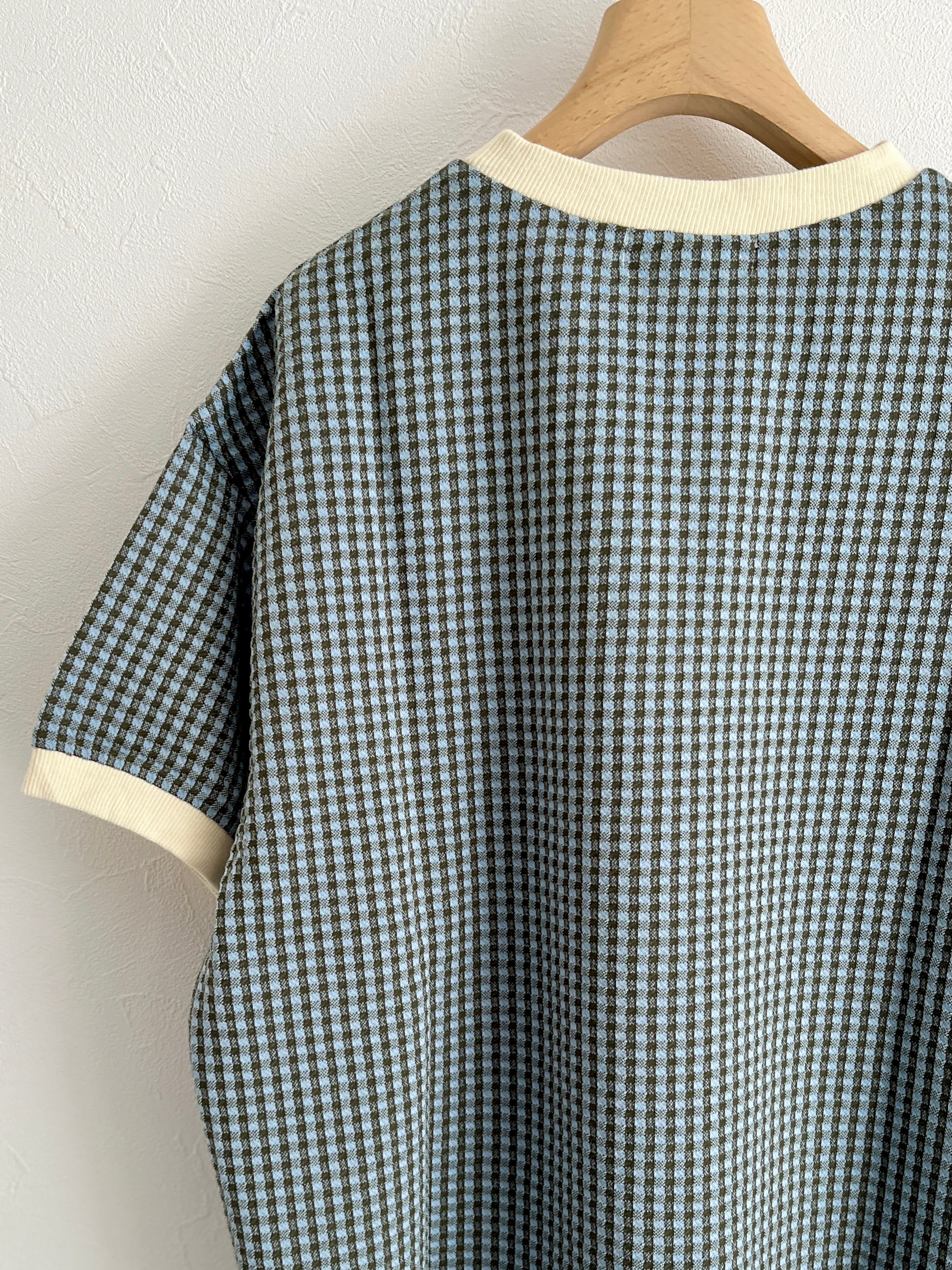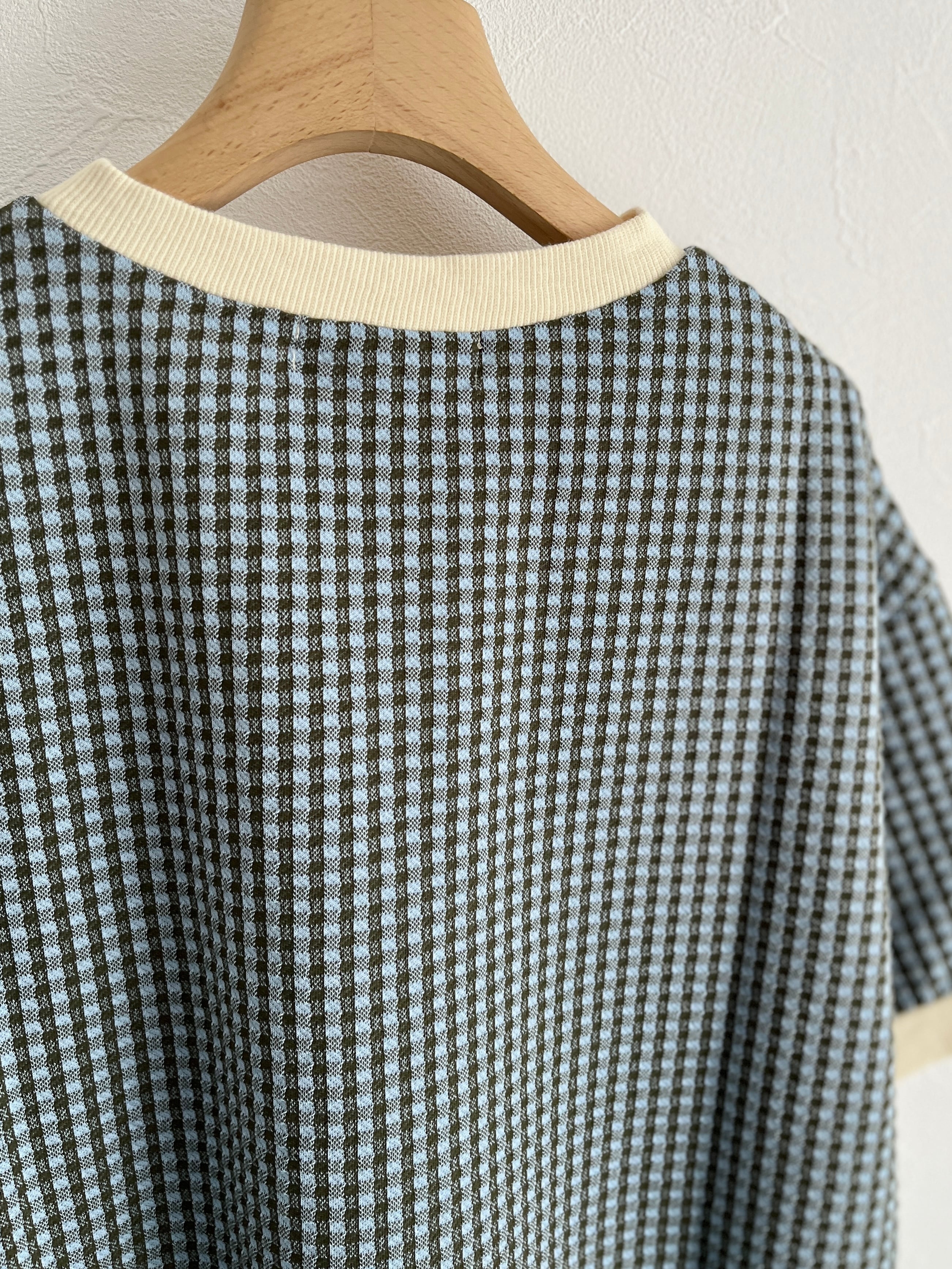 PAR ICI/ギンガムジャガード 半袖BIG Tシャツ(カーキ):5001CT029241