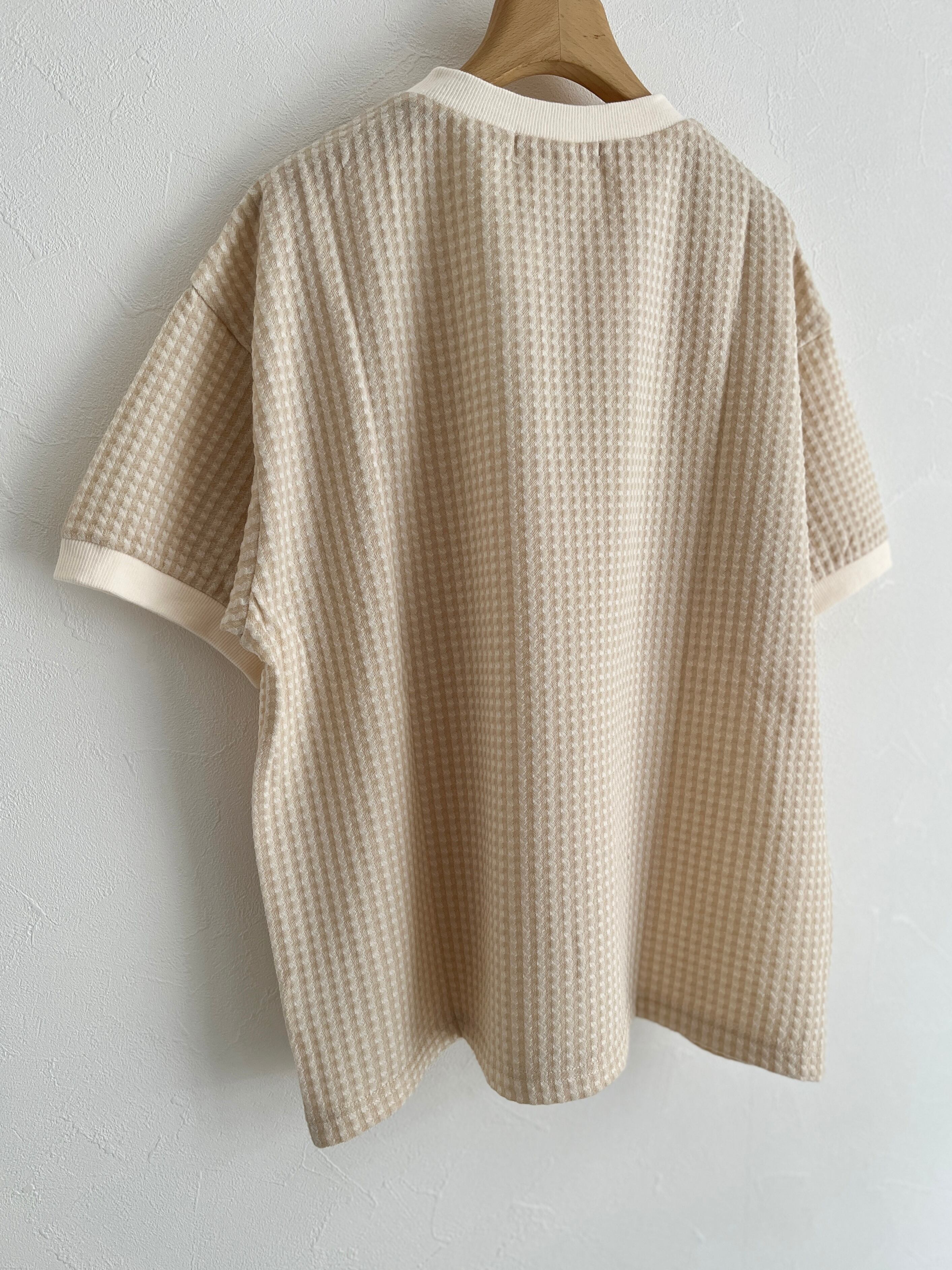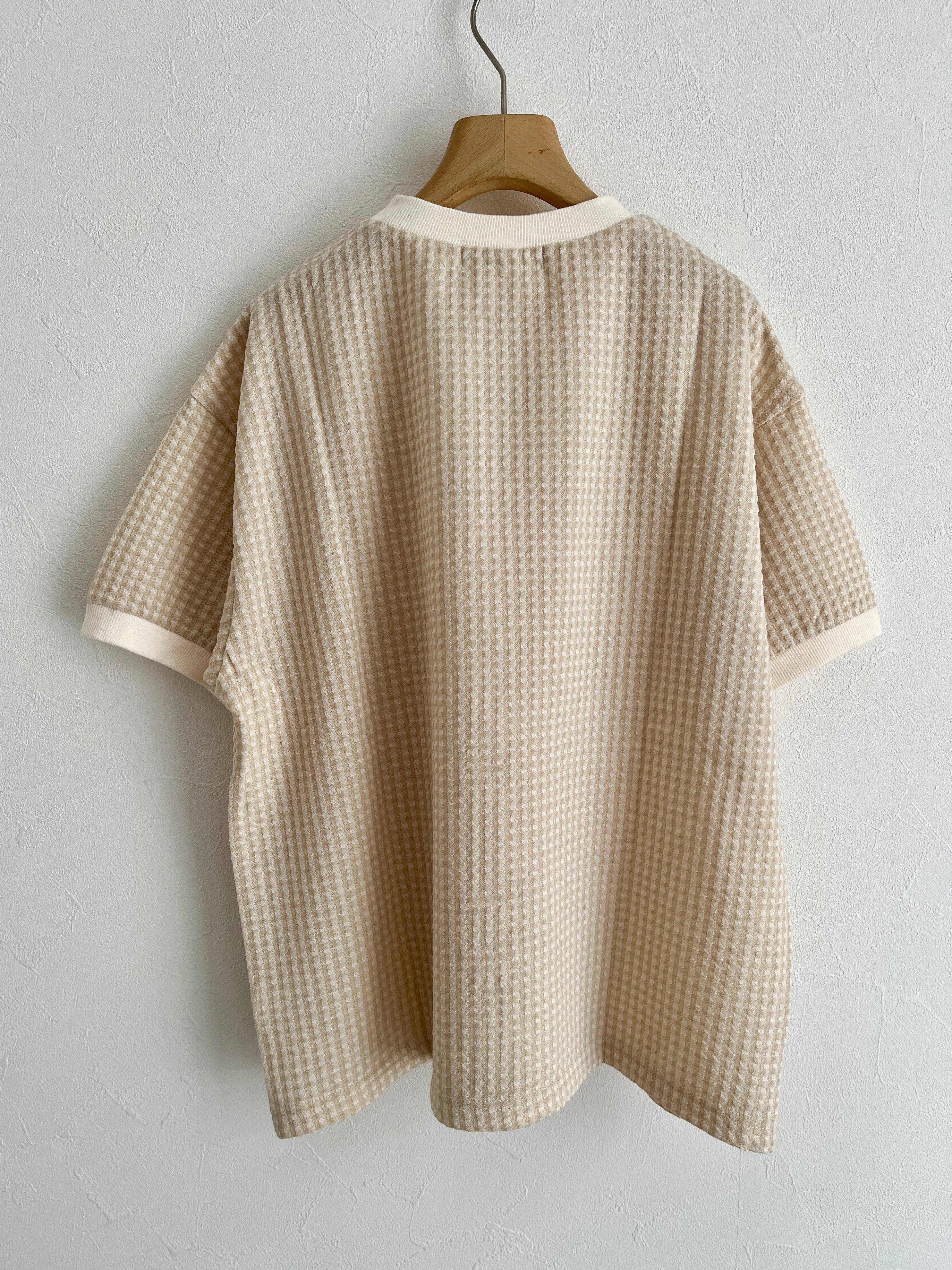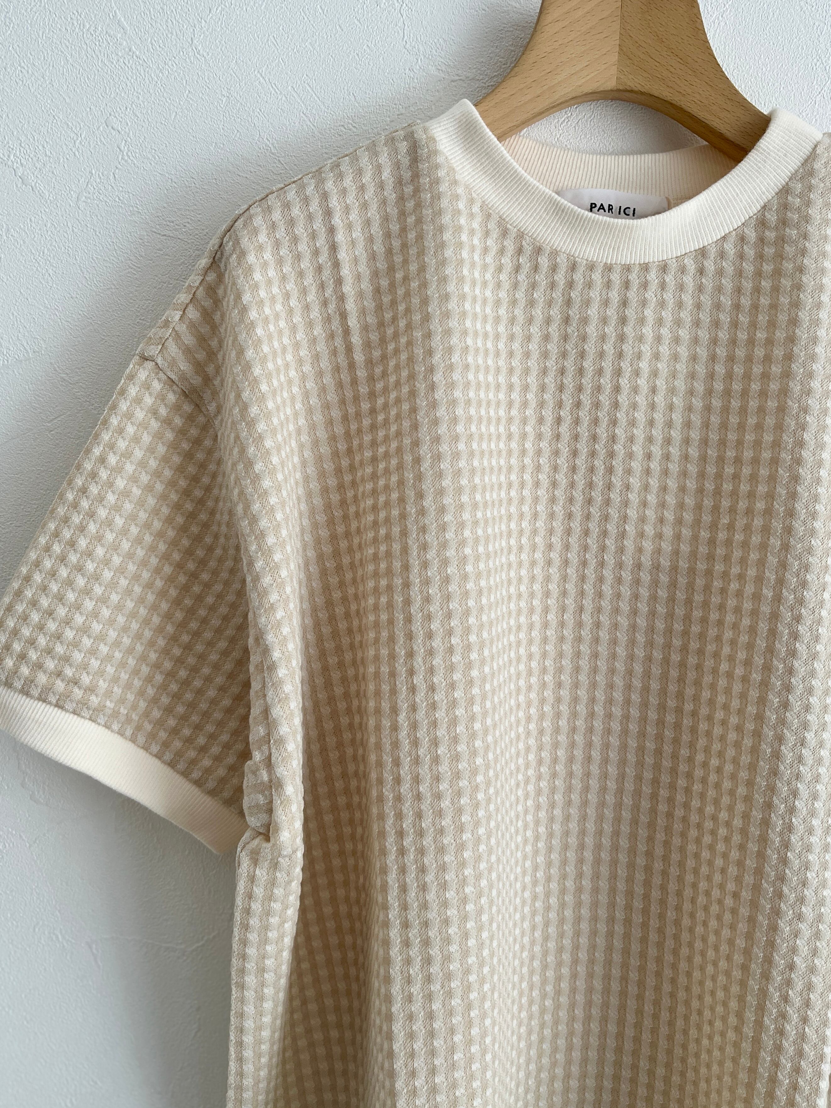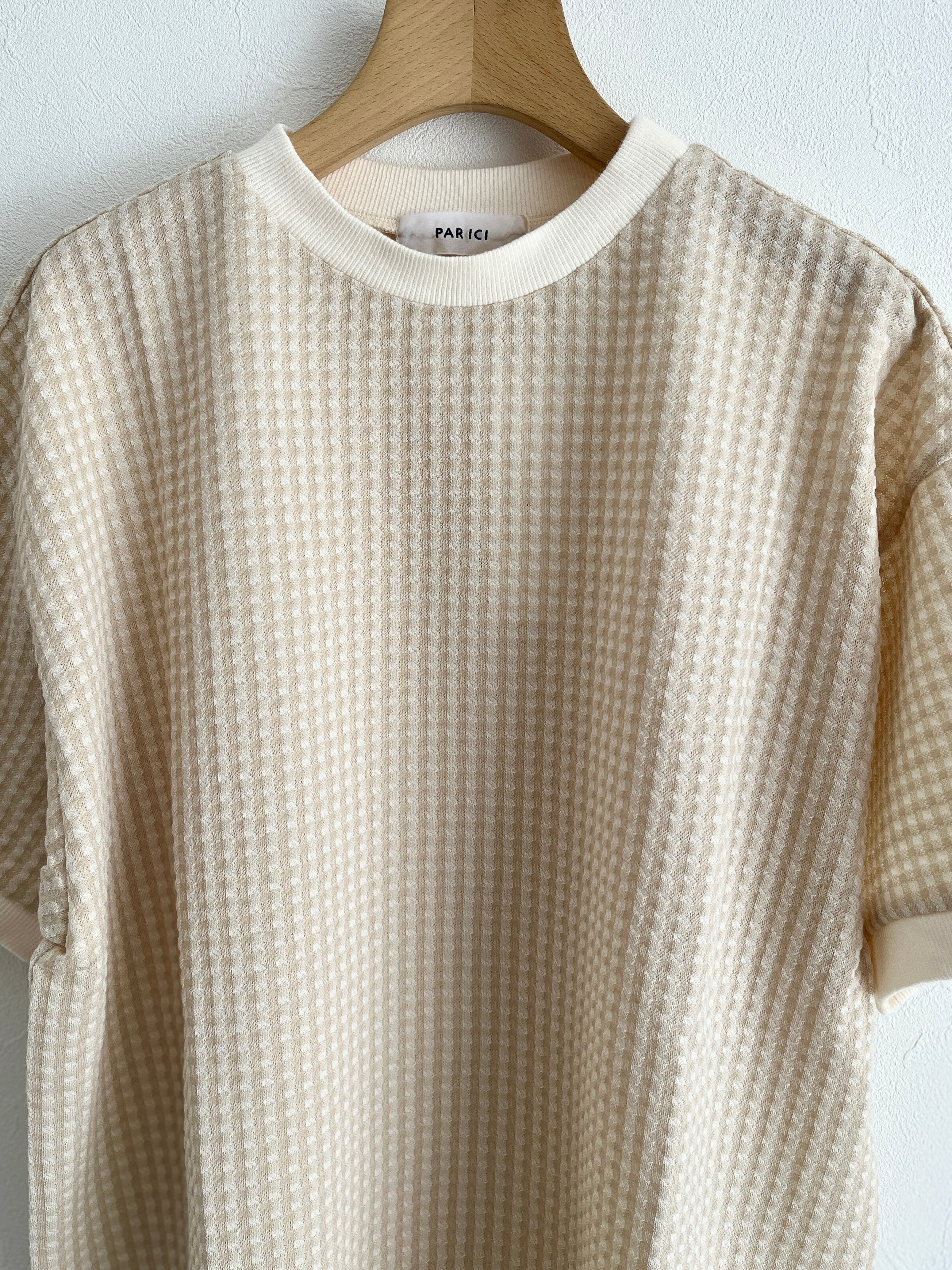 PAR ICI/ギンガムジャガード 半袖BIG Tシャツ (ベージュ) :5001CT029241