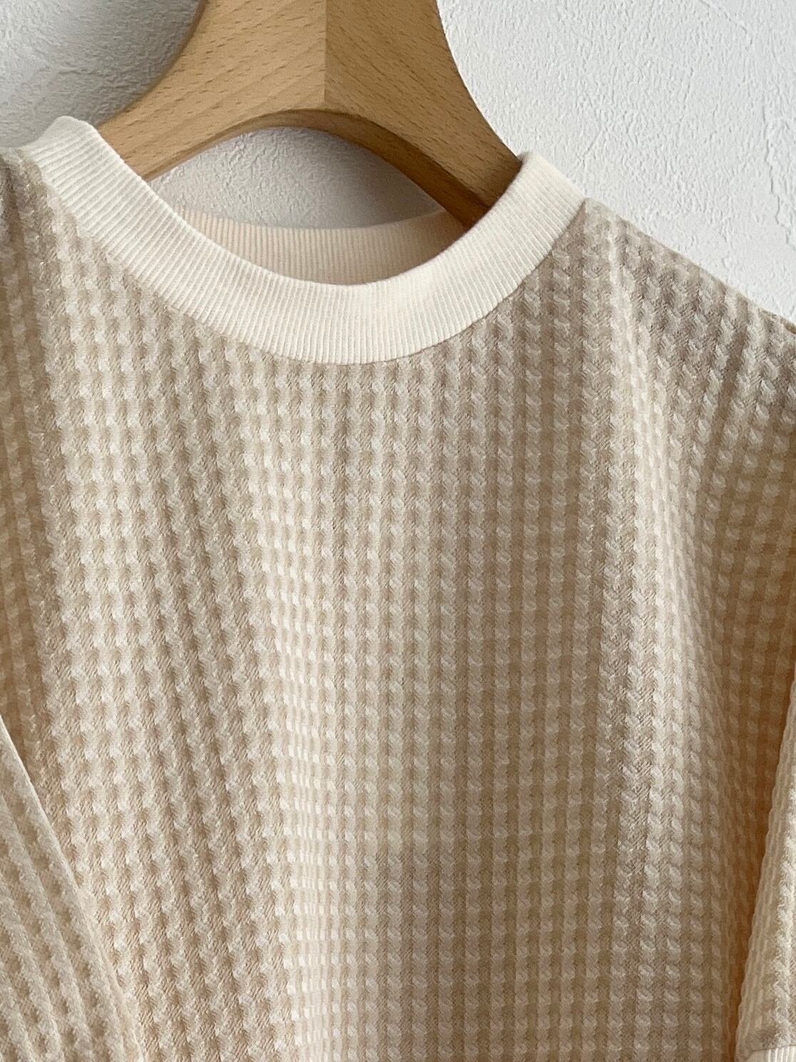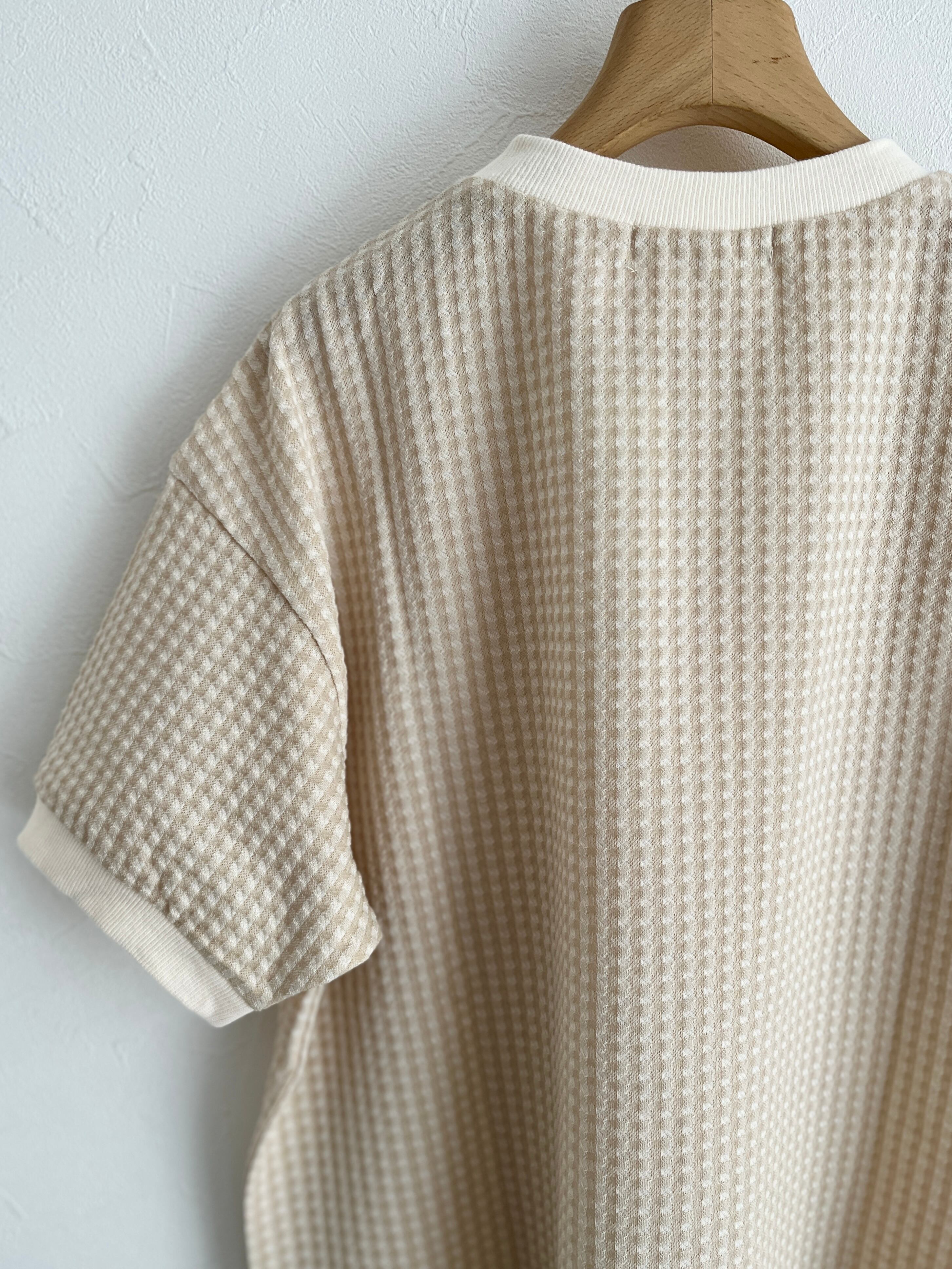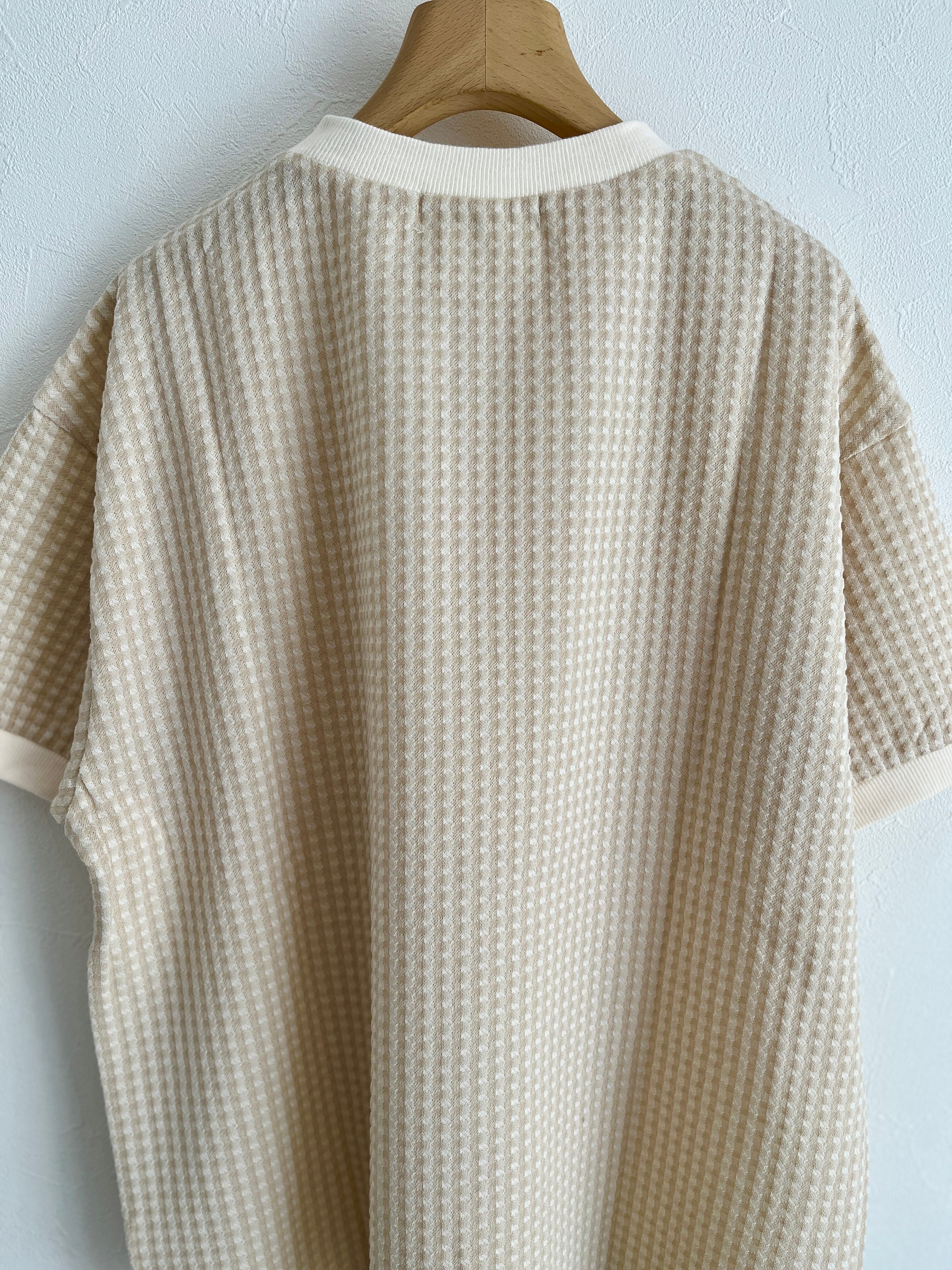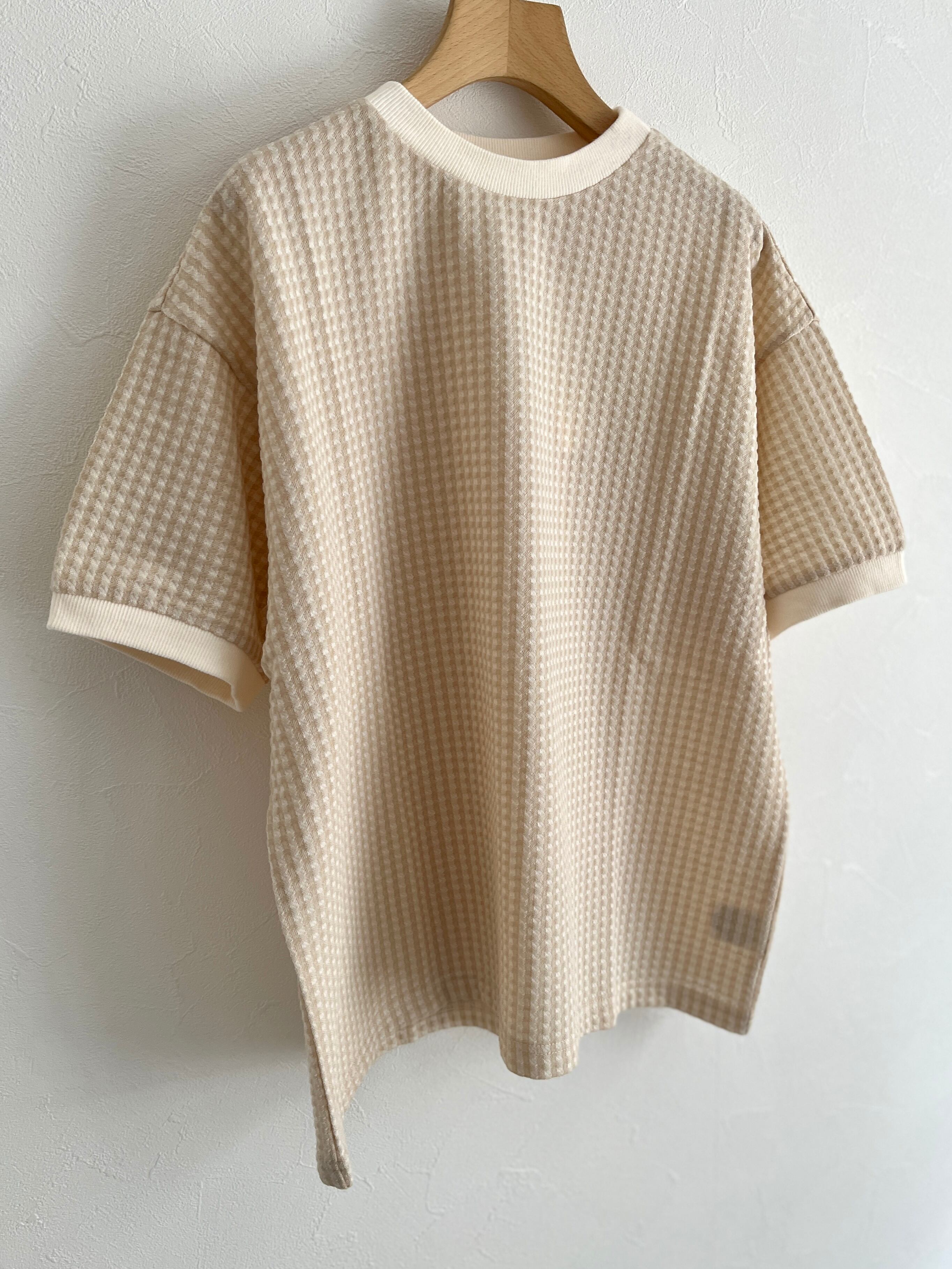 PAR ICI/ギンガムジャガード 半袖BIG Tシャツ (ベージュ) :5001CT029241