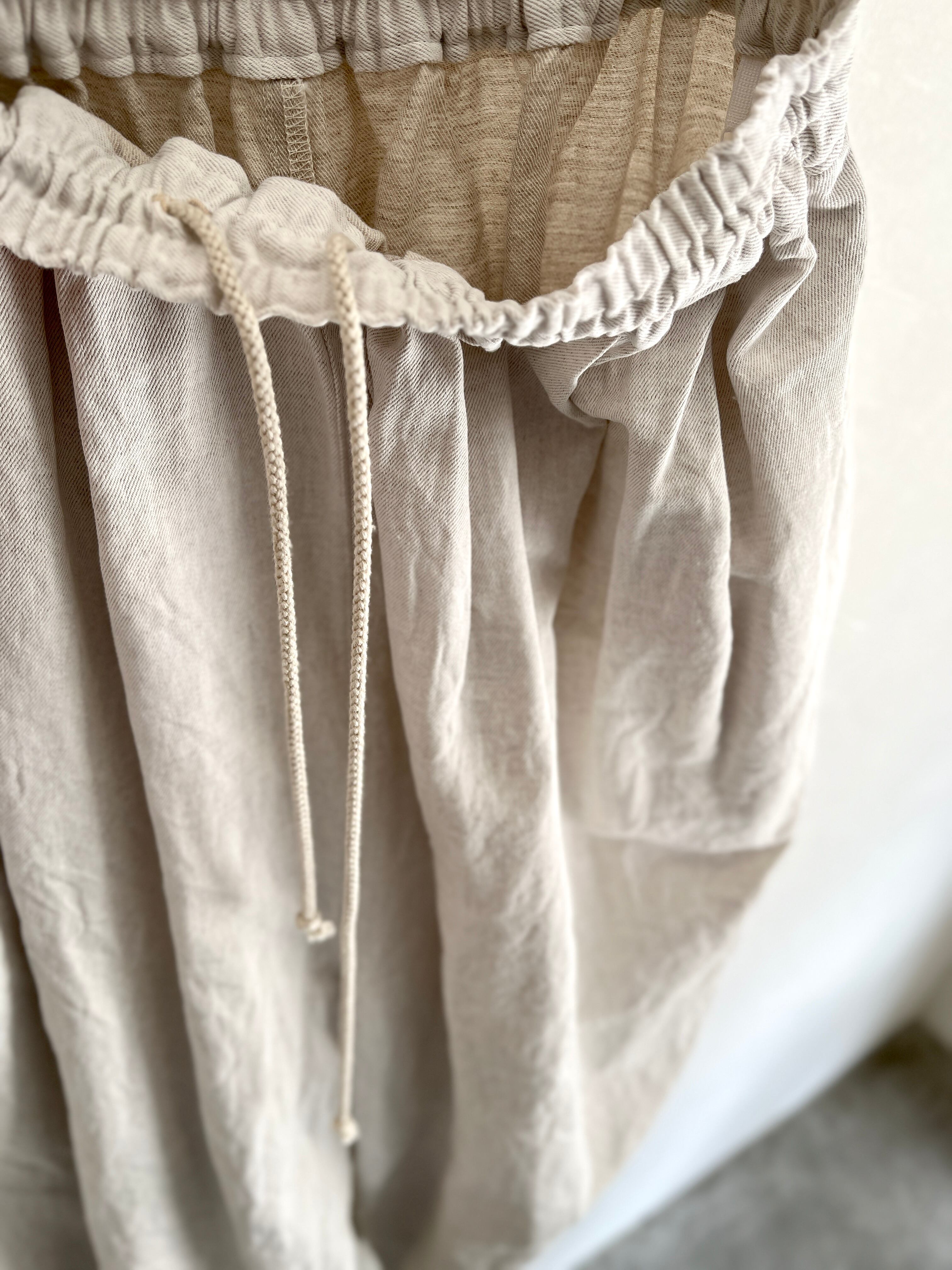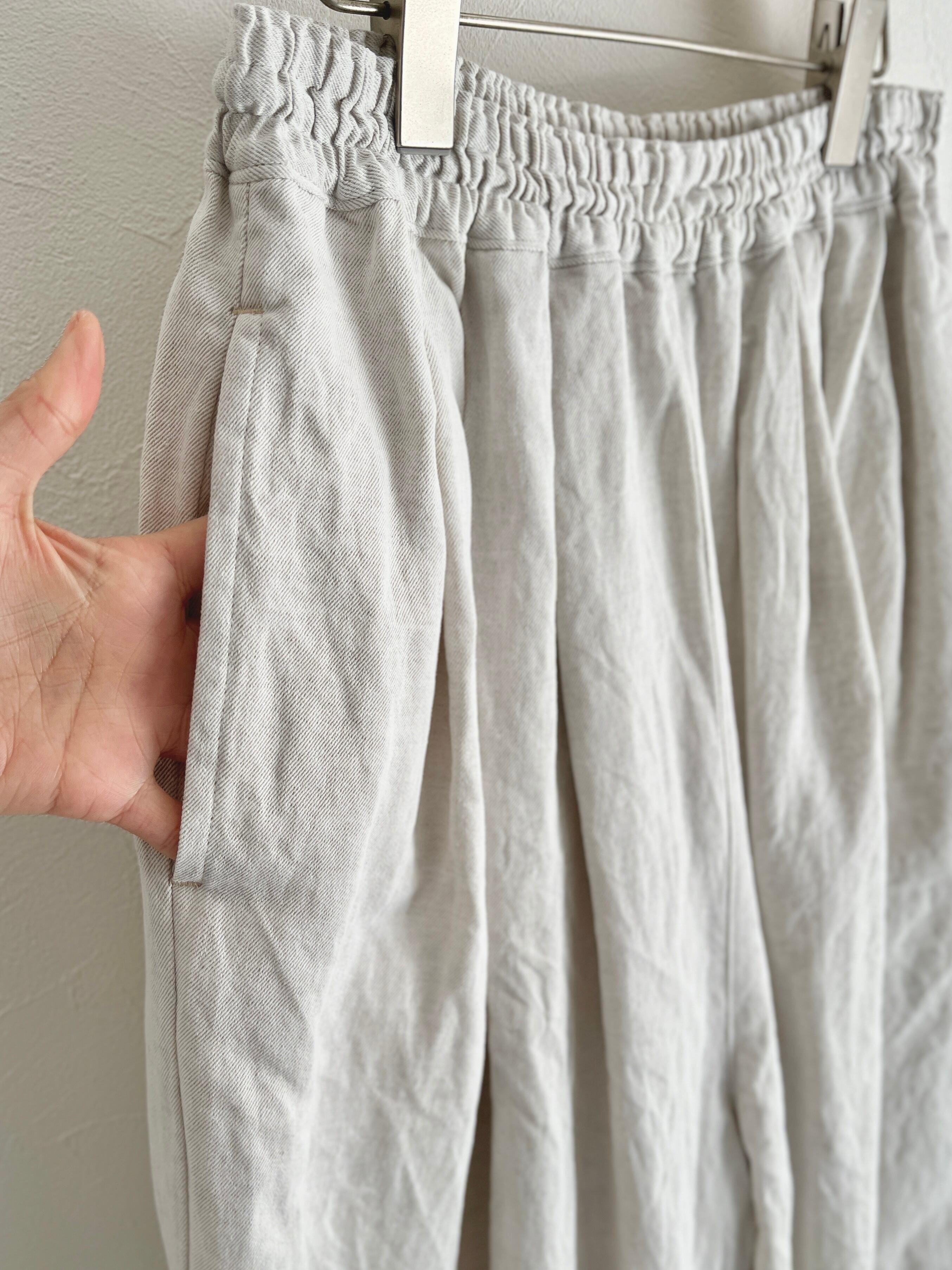 yuni/Cotton/Linen denim wide cocoon パンツ (シロ):1701PT016261