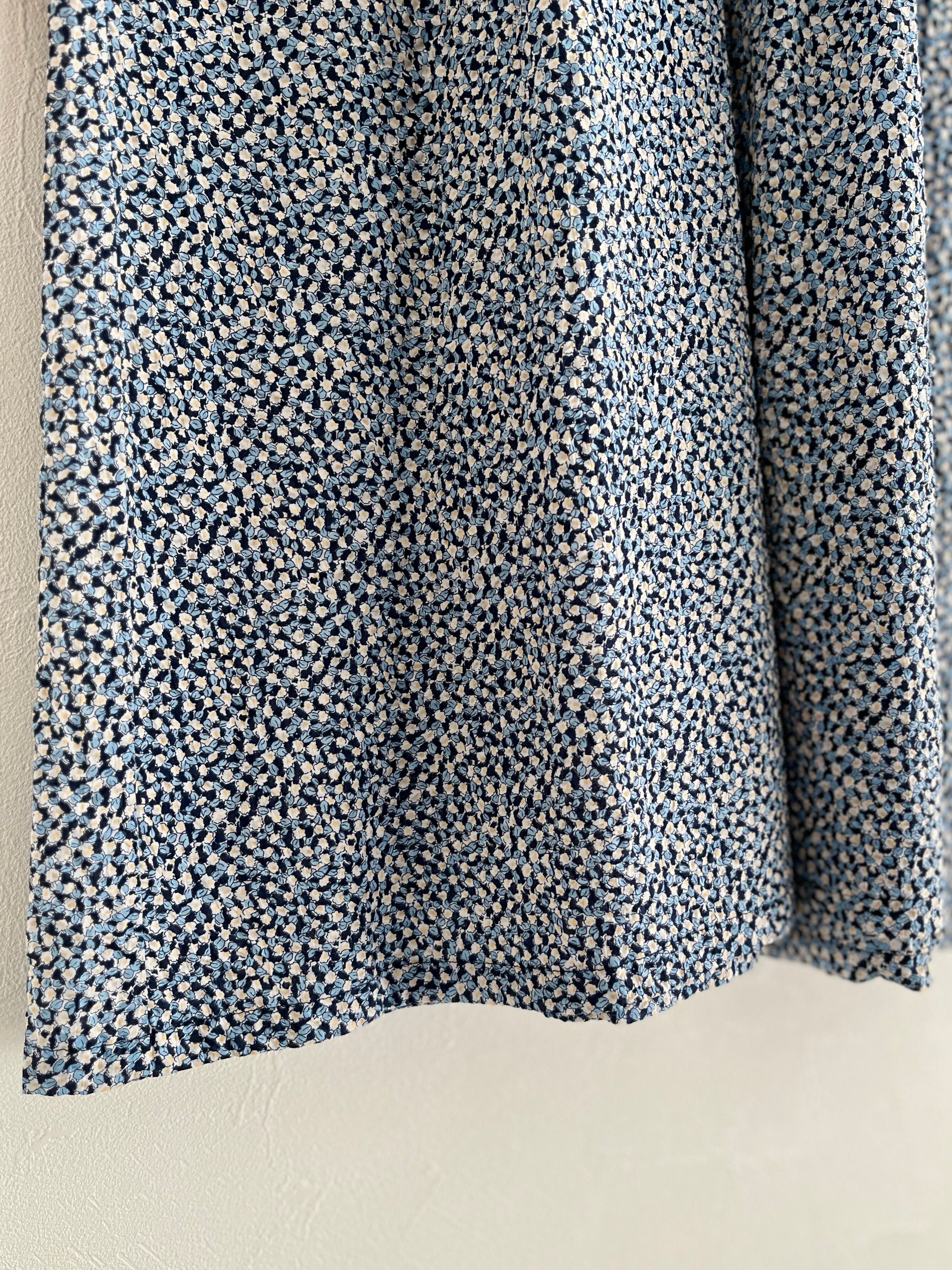 可憐な印象の小花柄は甘くなりすぎないカラーをチョイスし、普段カジュアルなお洋服を着る方にも挑戦しやすいアイテムに。