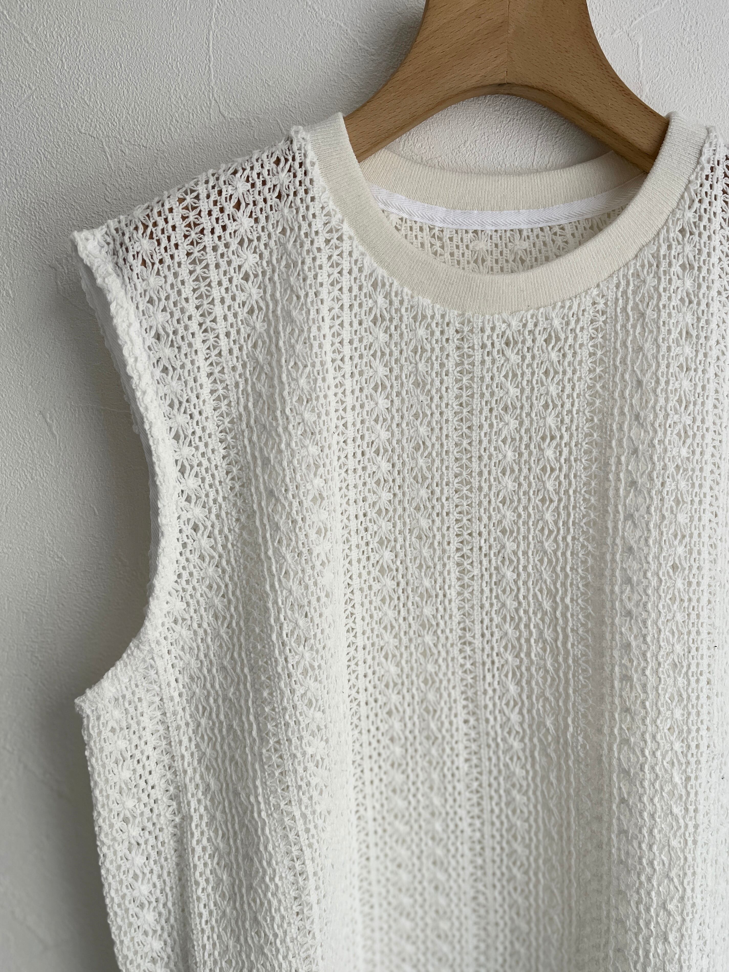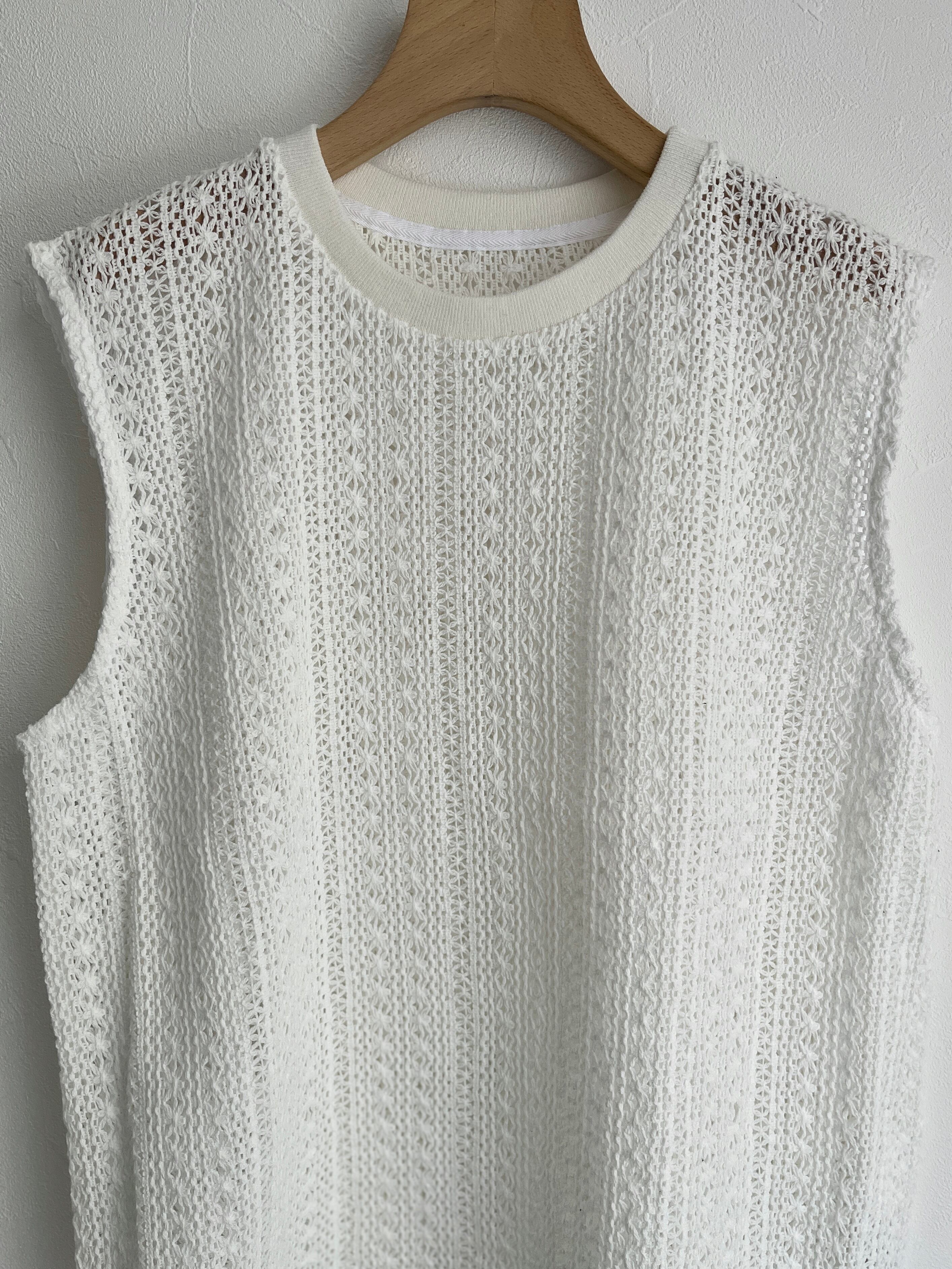 yuni/crochet cotton lace no-sleeves プルオーバー (シロ):1701CT003261