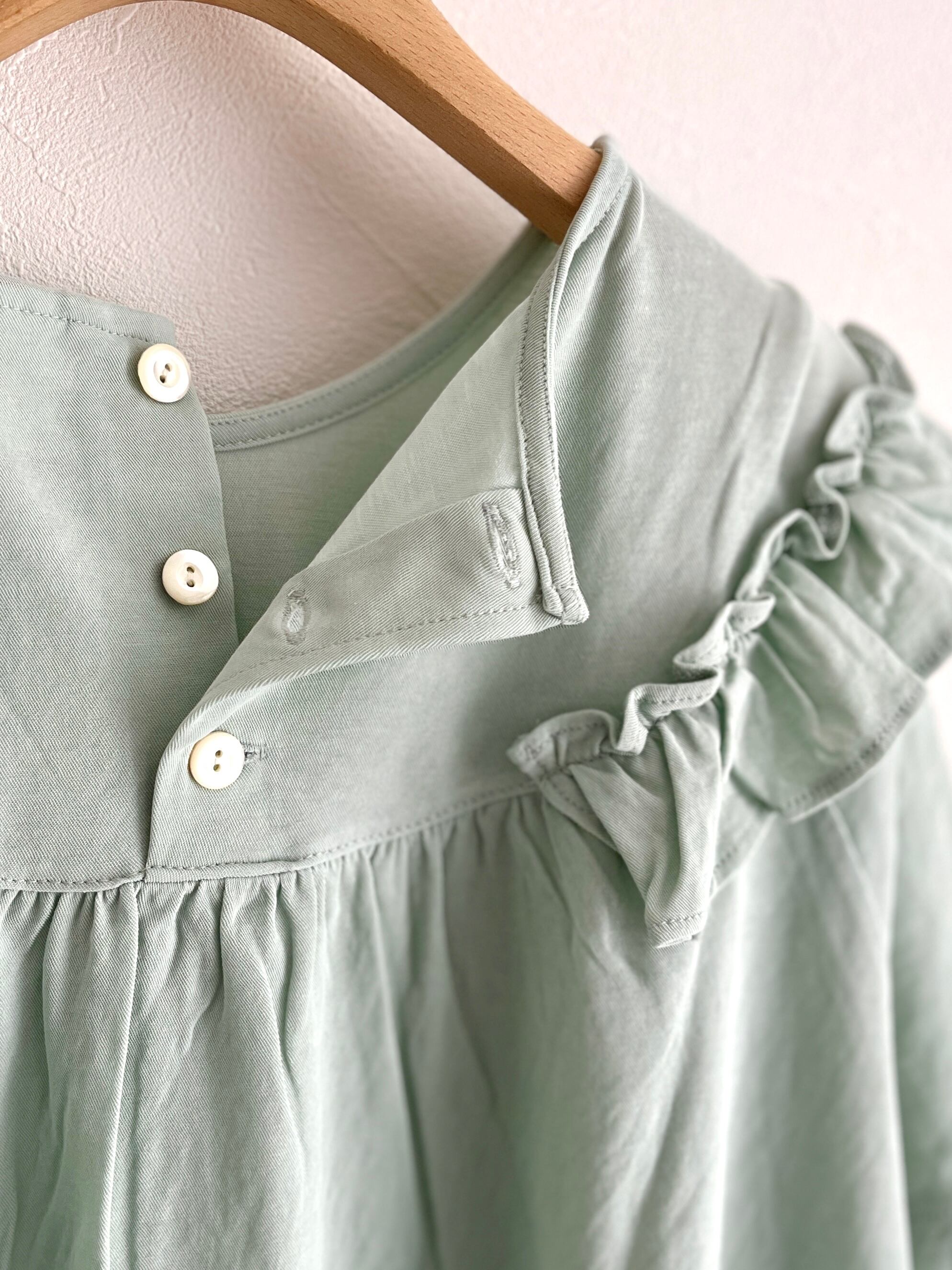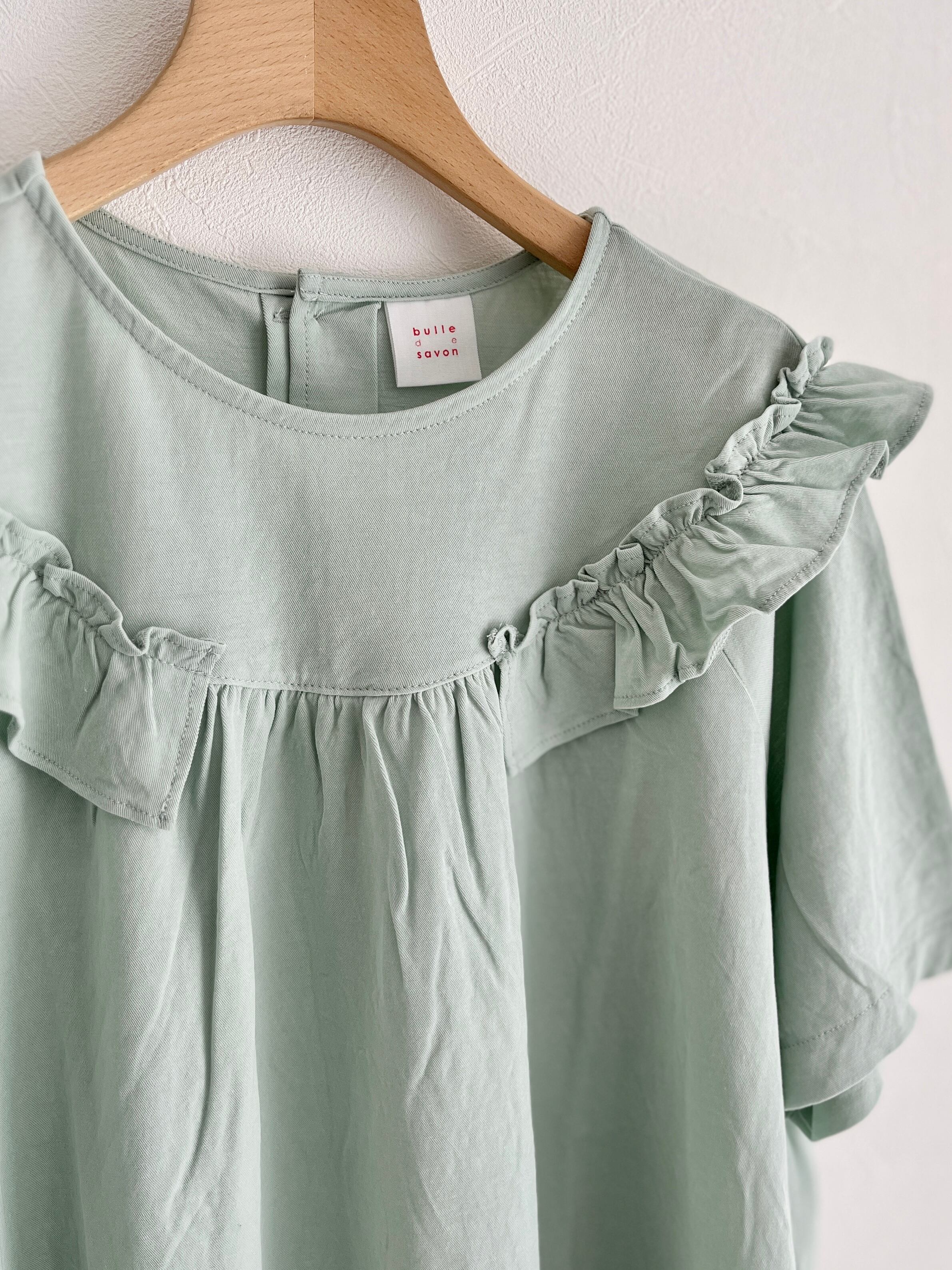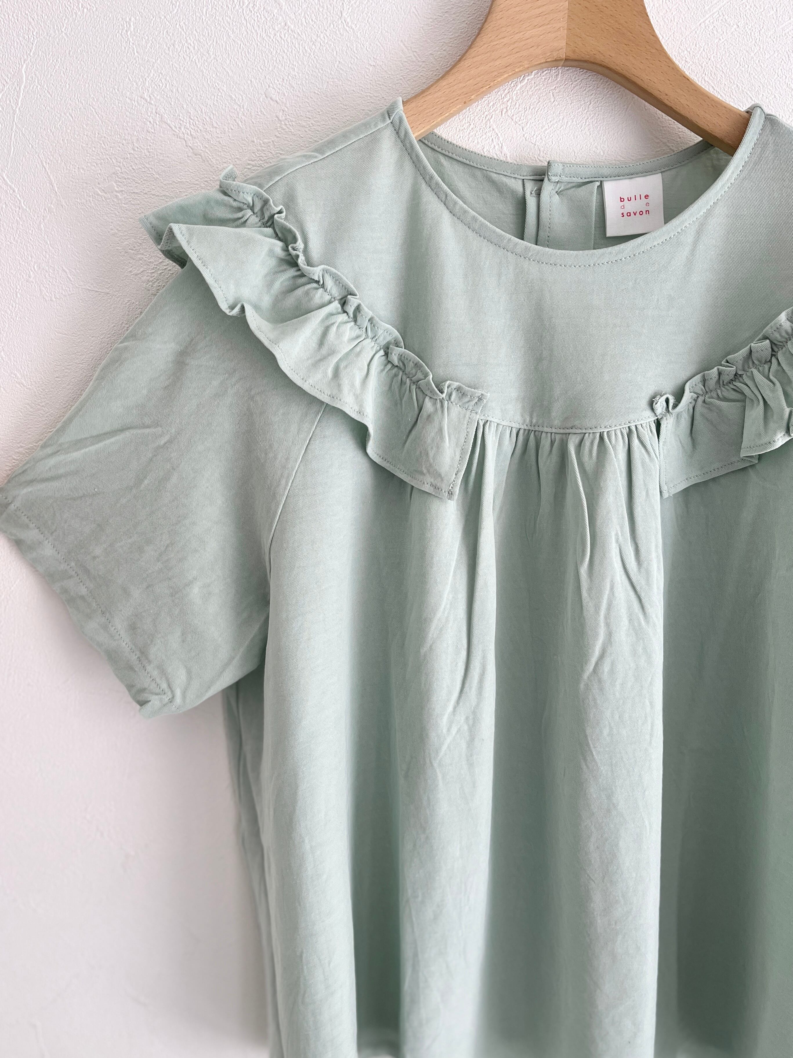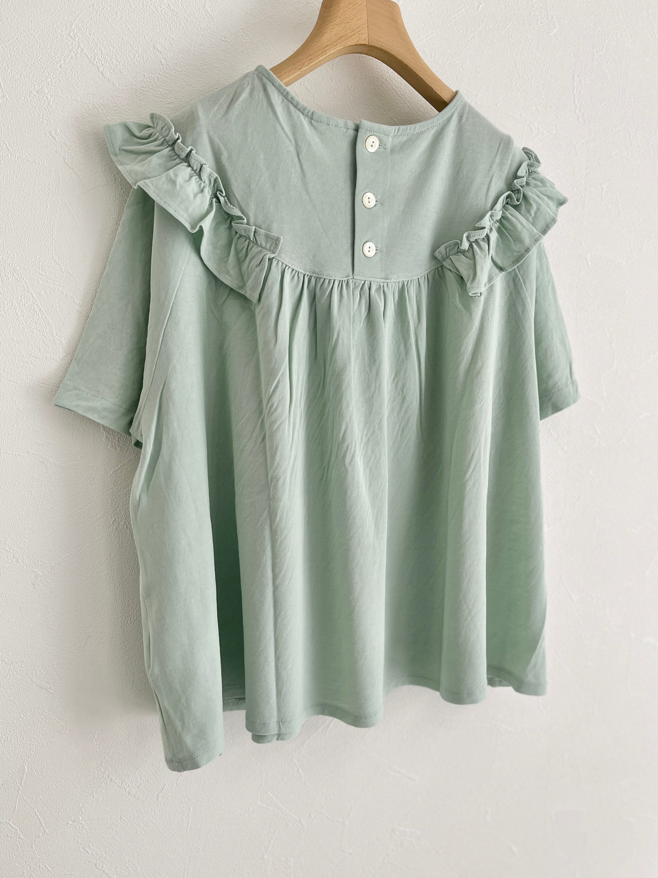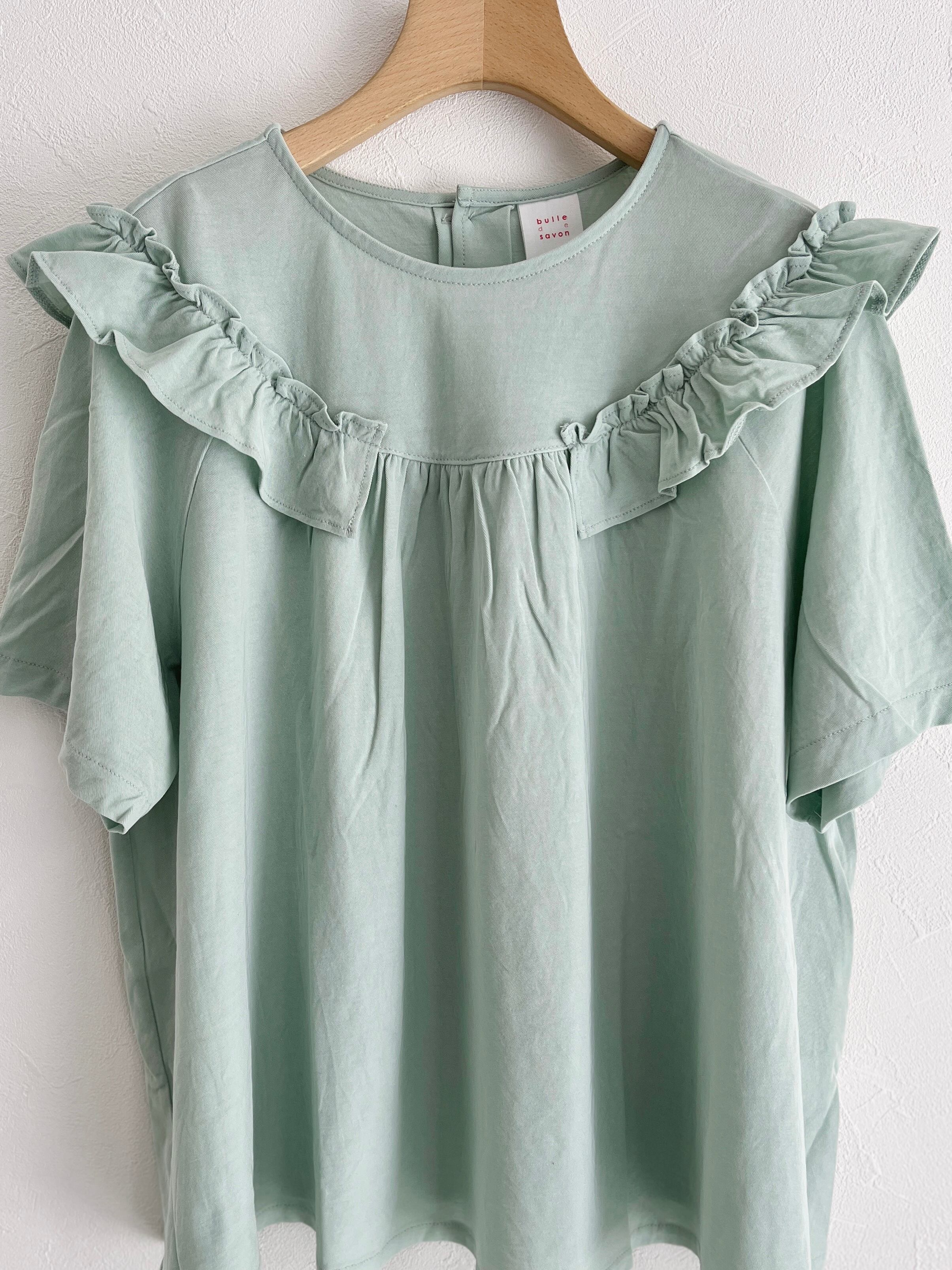 bulle de savon/強撚 フリルTシャツ (ミント):0301CT015261