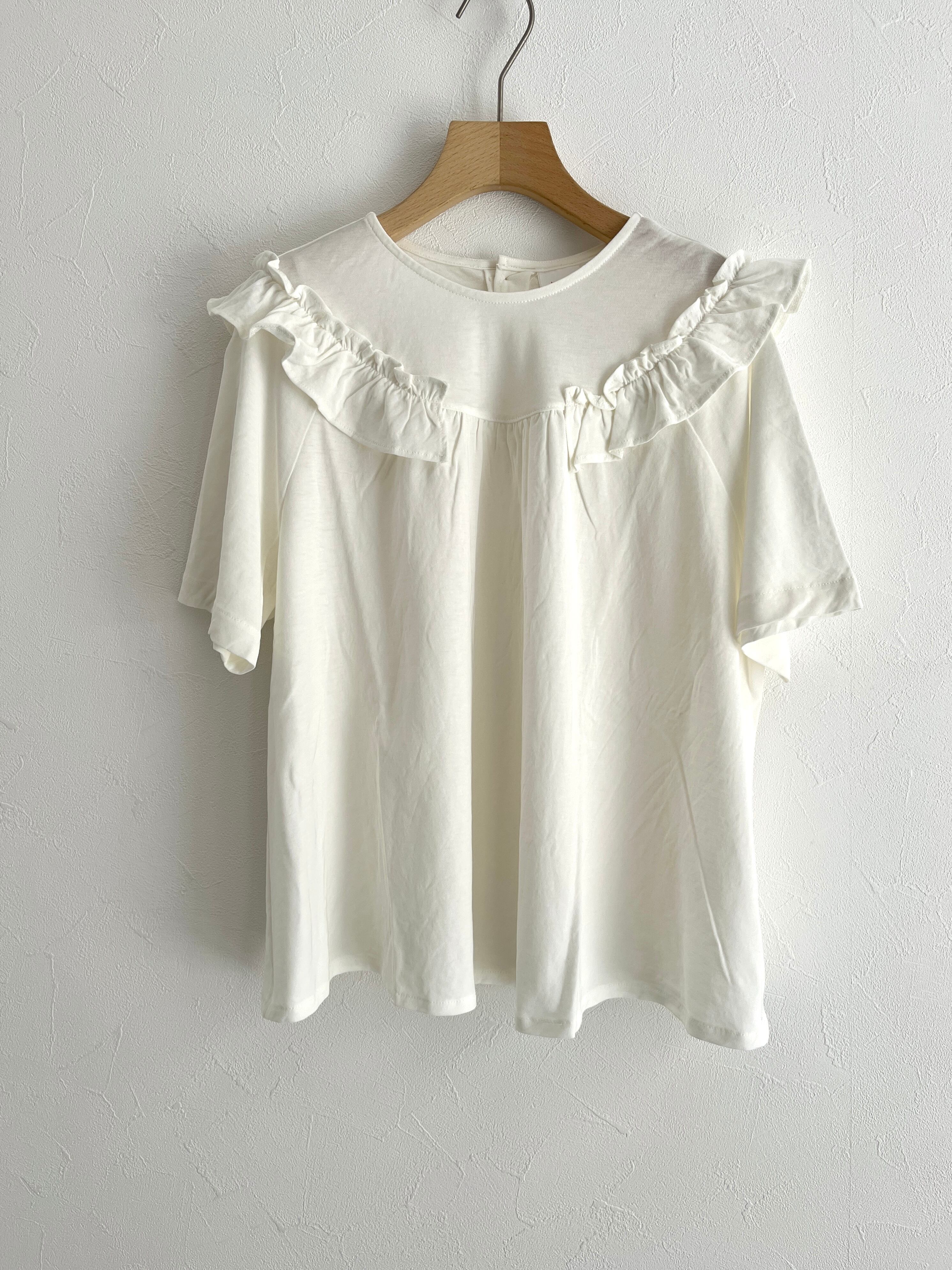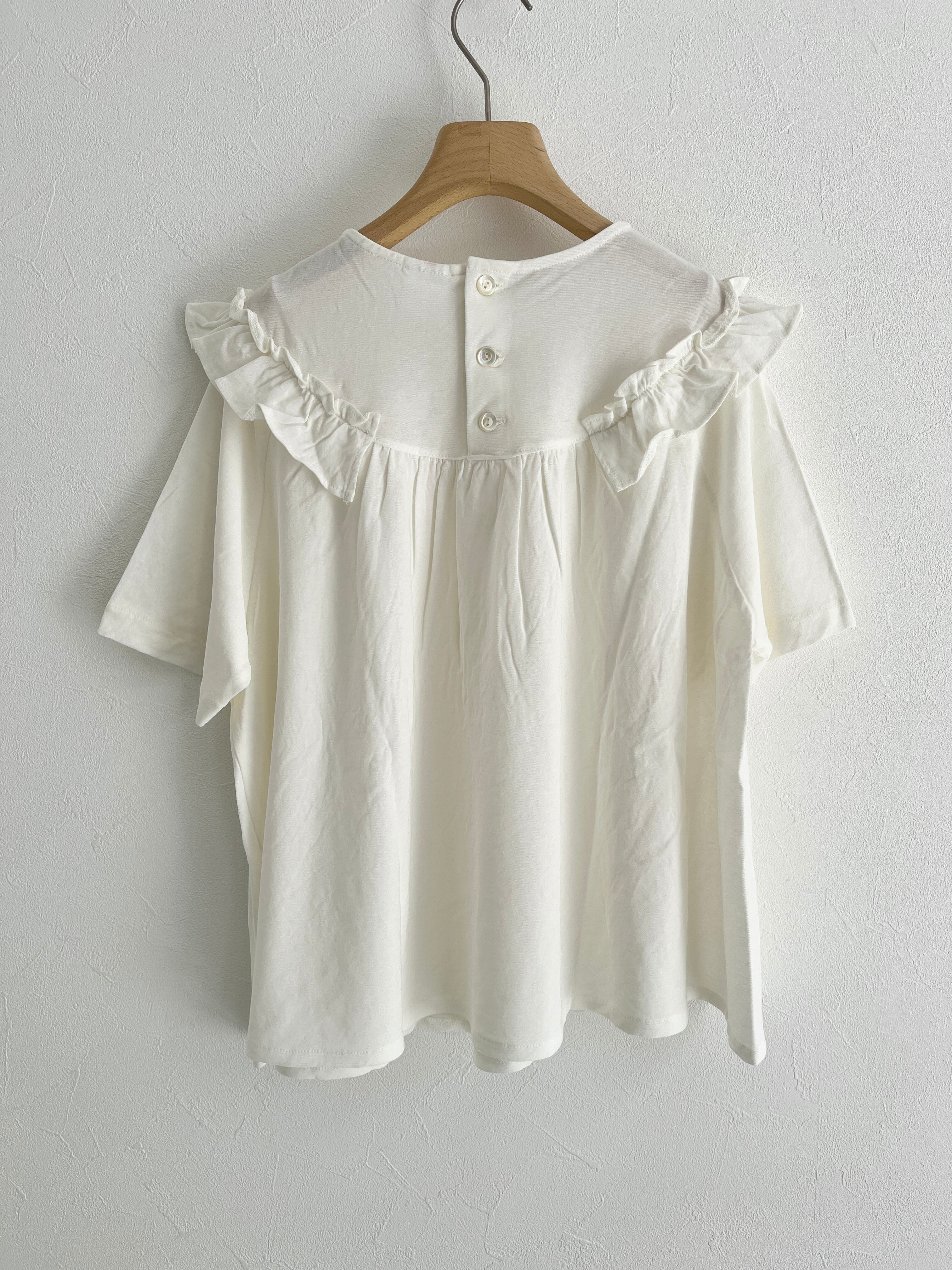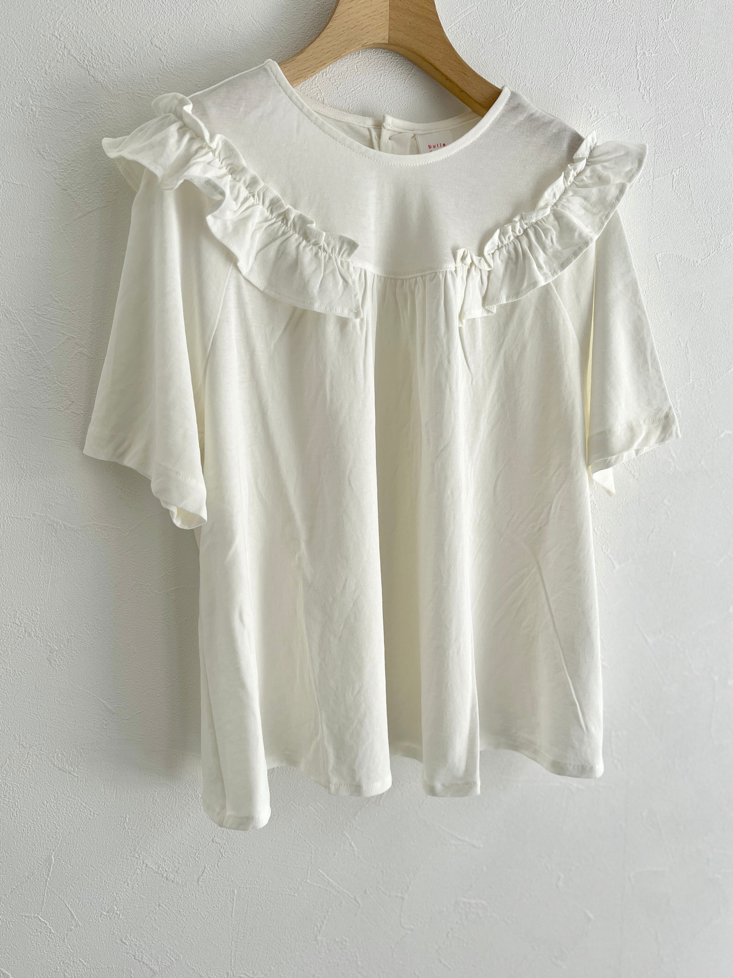 bulle de savon/強撚 フリルTシャツ (シロ):0301CT015261