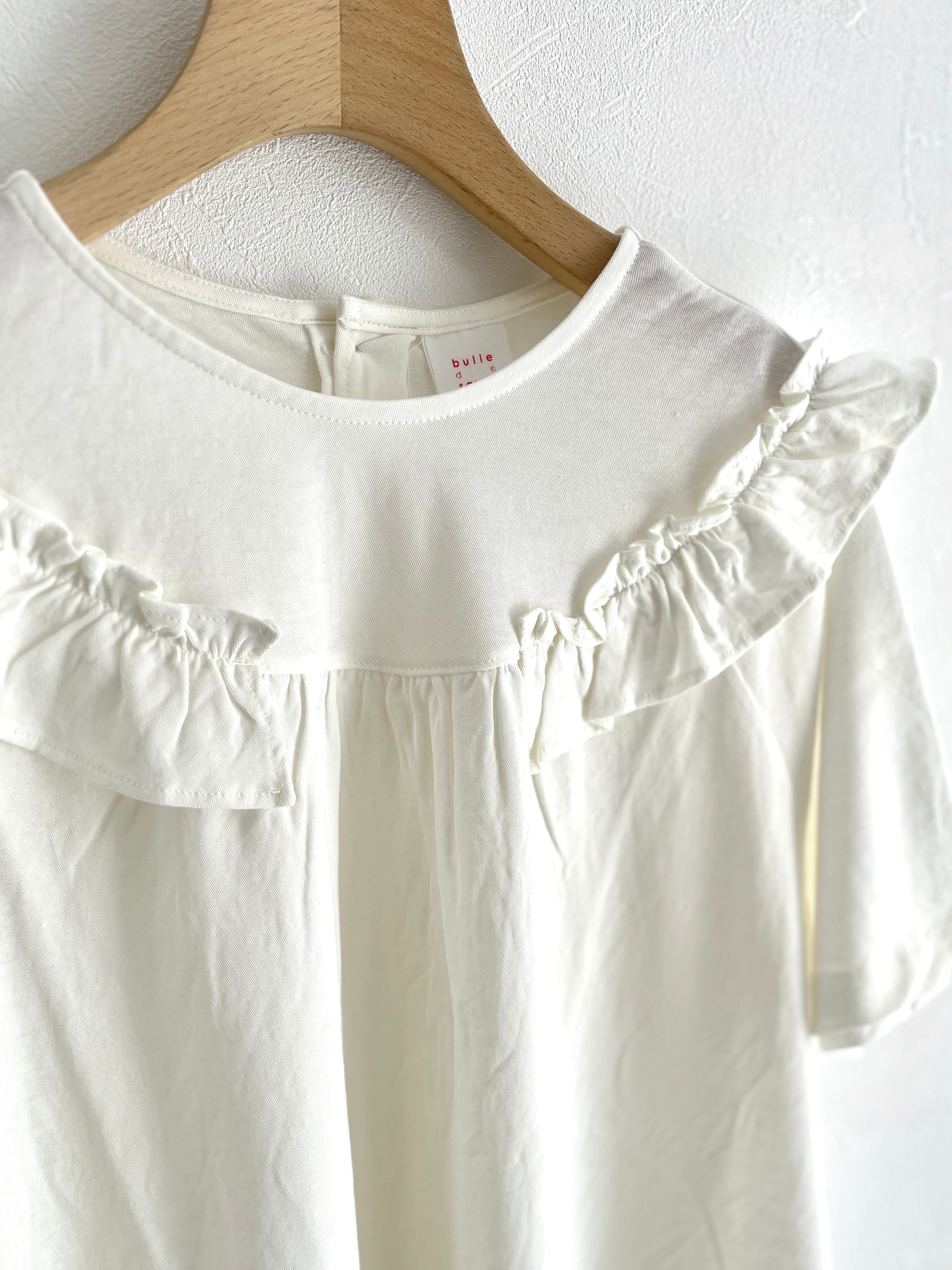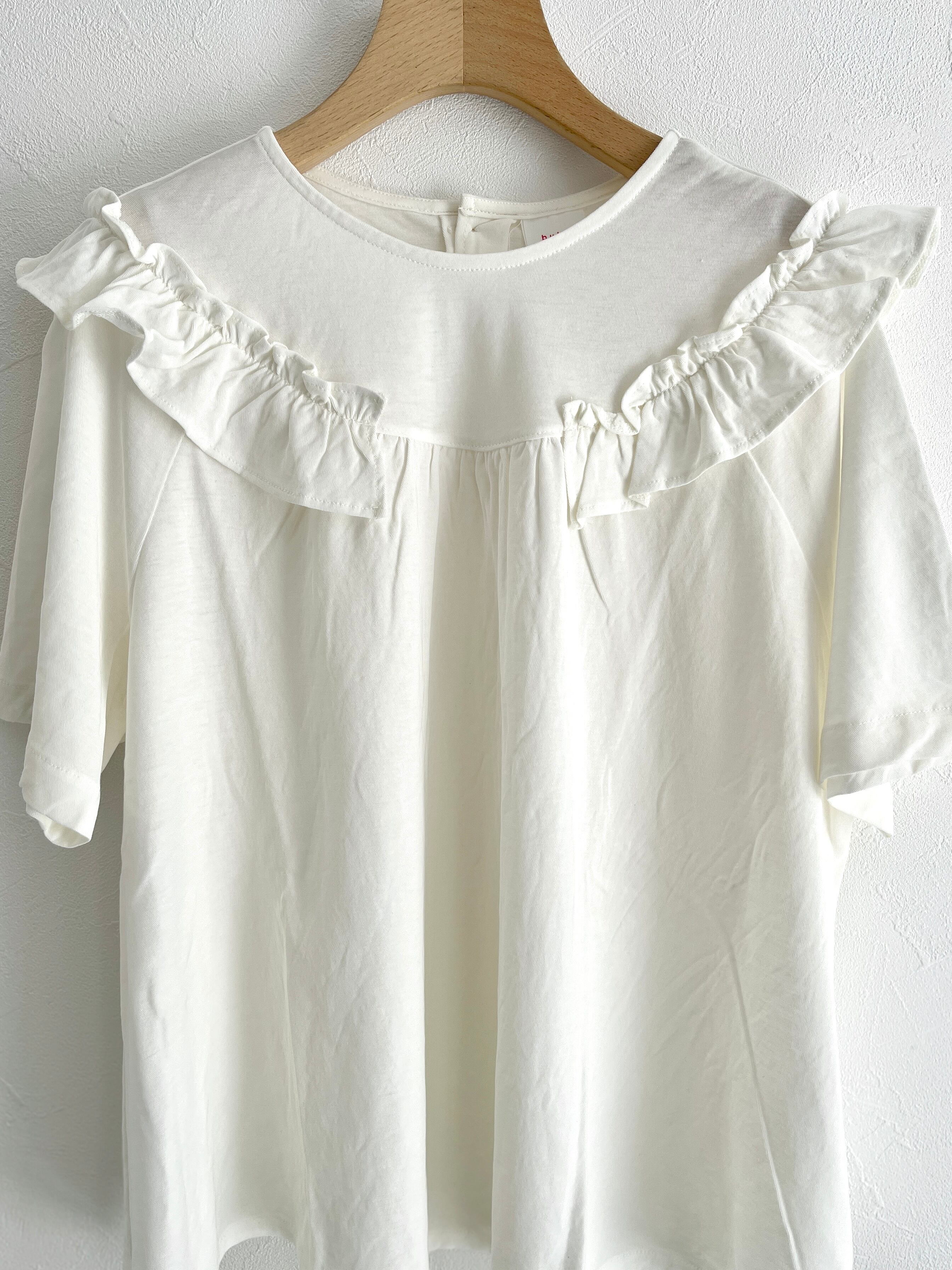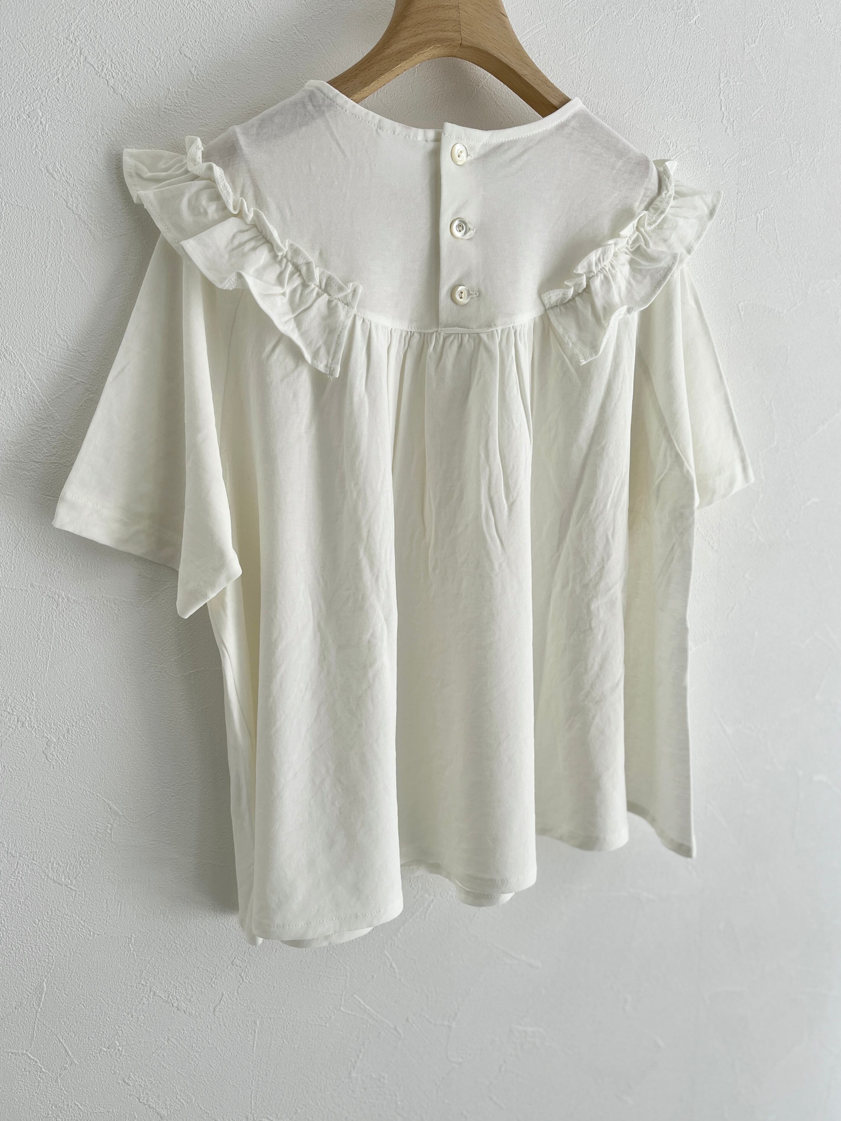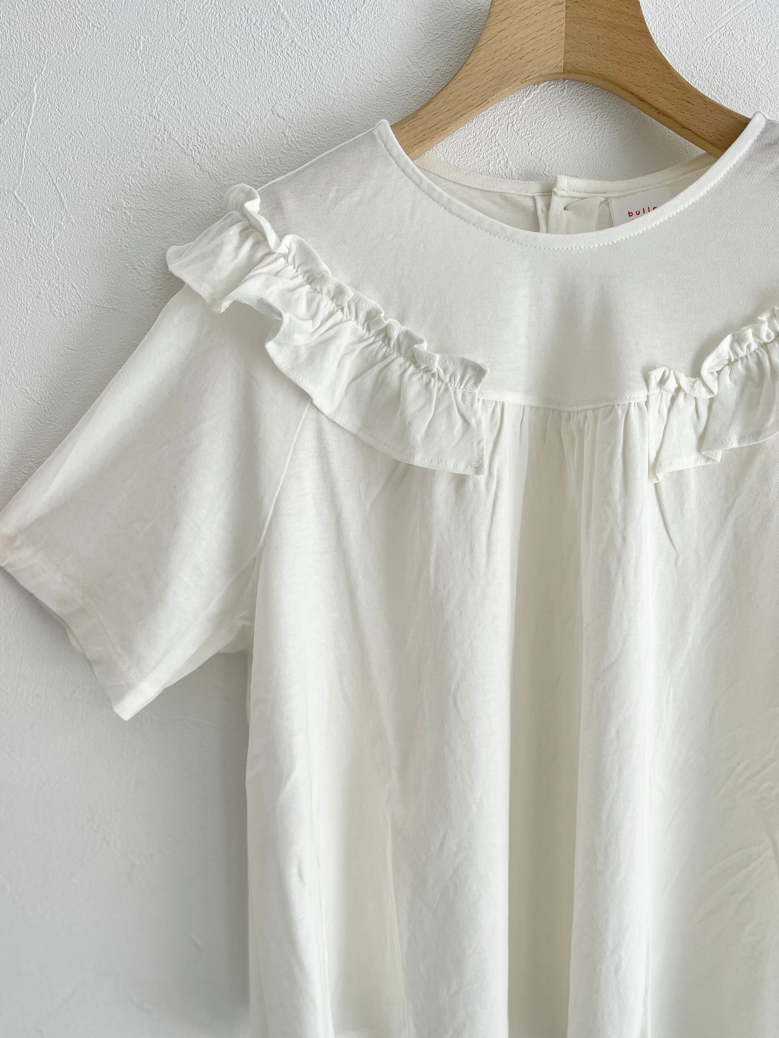 bulle de savon/強撚 フリルTシャツ (シロ):0301CT015261