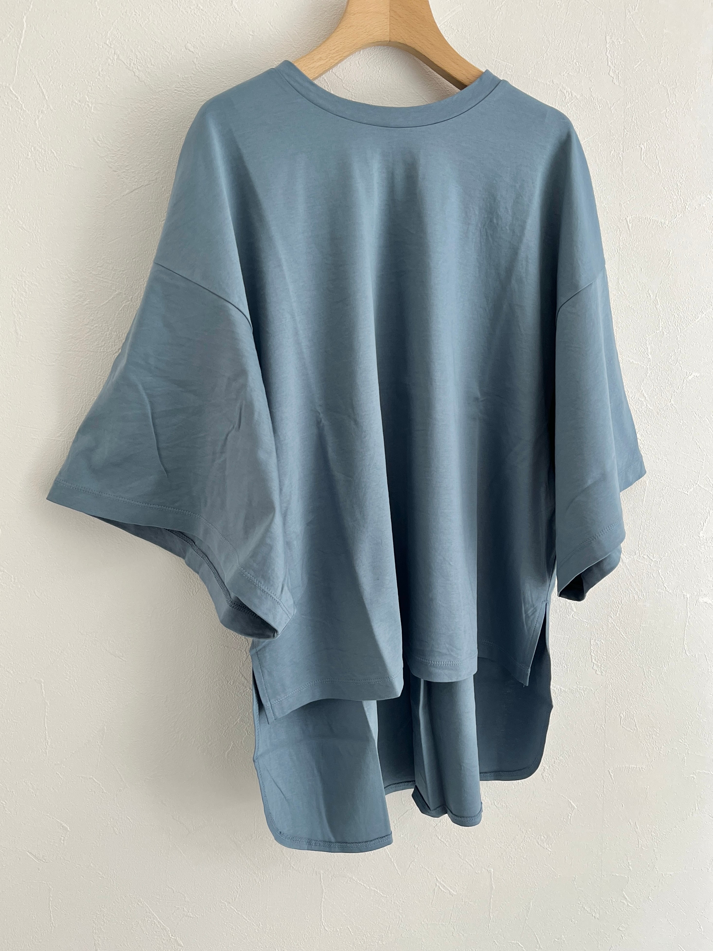 yuni/high count cotton wide sleeves T-シャツ (アオ):1701CT016261
