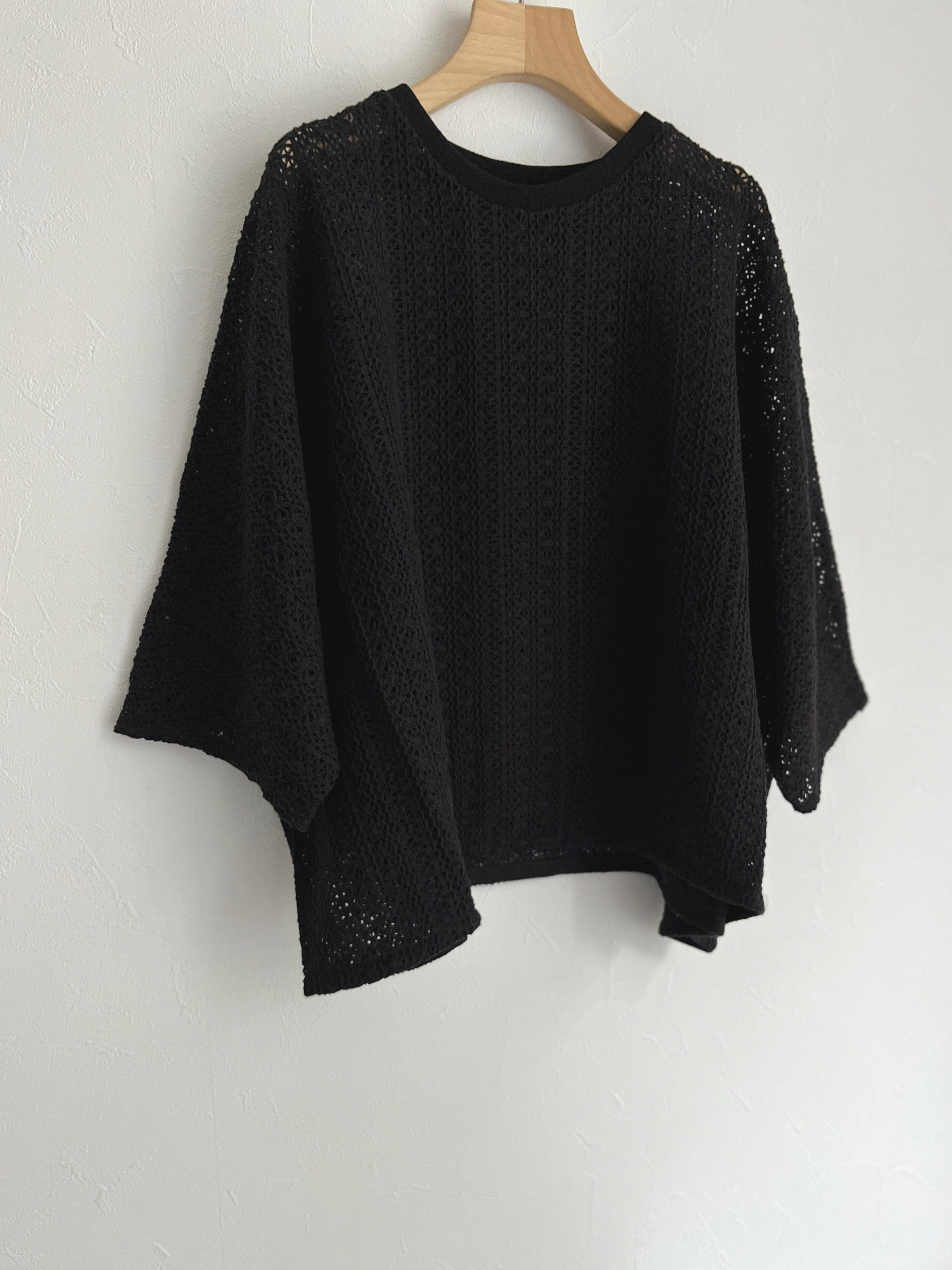yuni/crochet cotton lace プルオーバー シャツ (クロ):1701CT001261