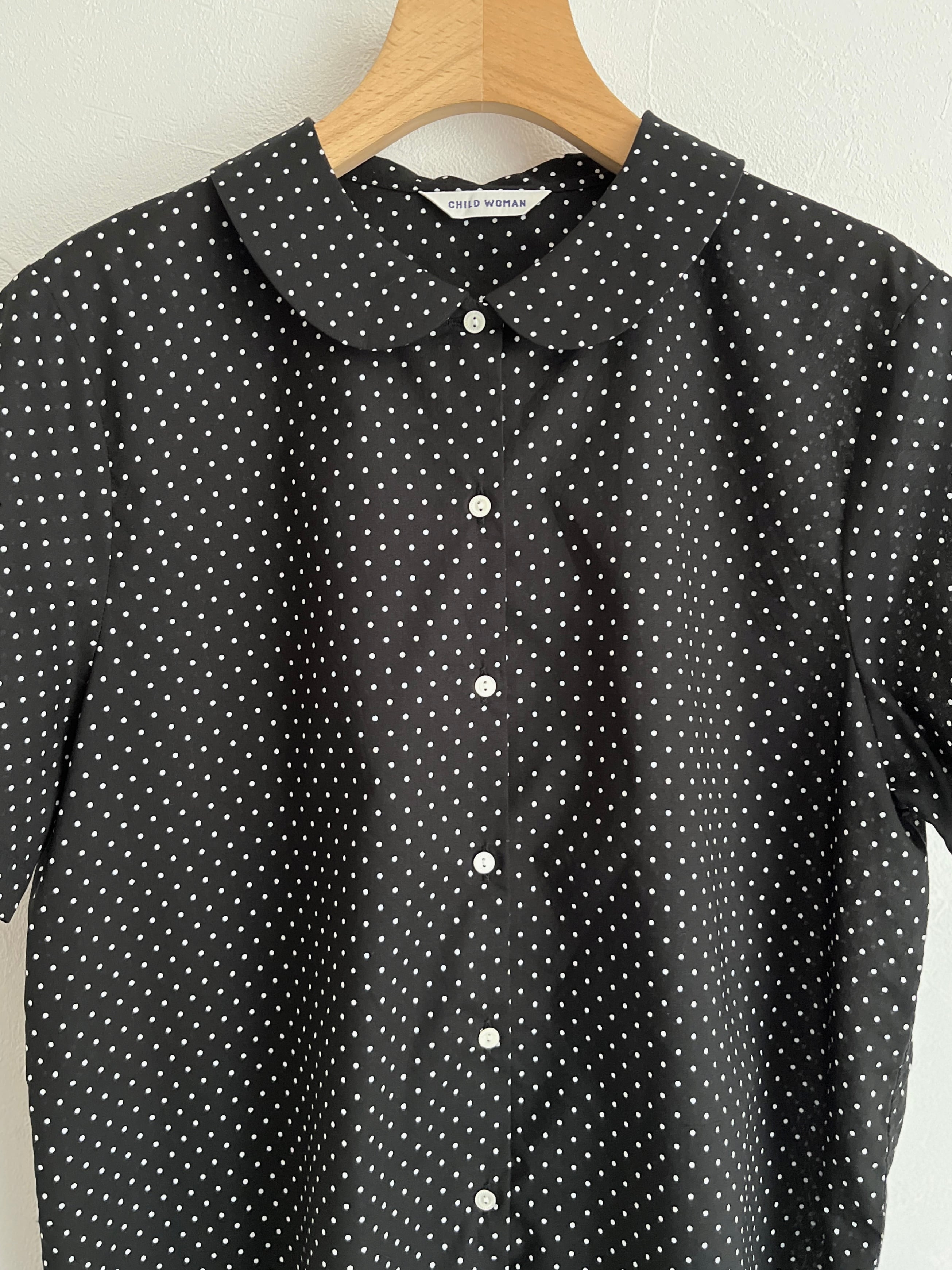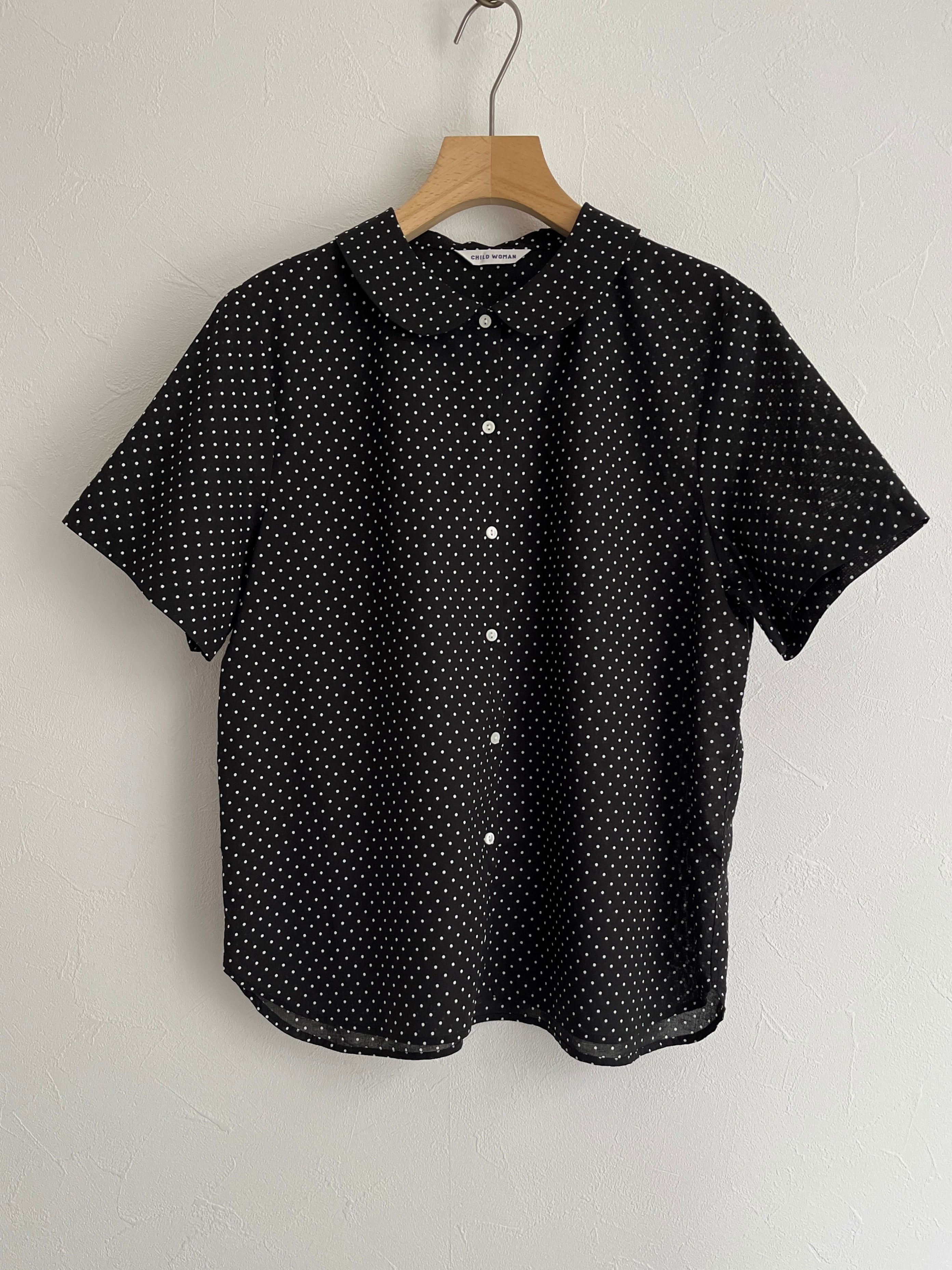 CHILD WOMAN/100/2ブロード・ローンドット 丸襟半袖ブラウス (クロドット):0101BL007261